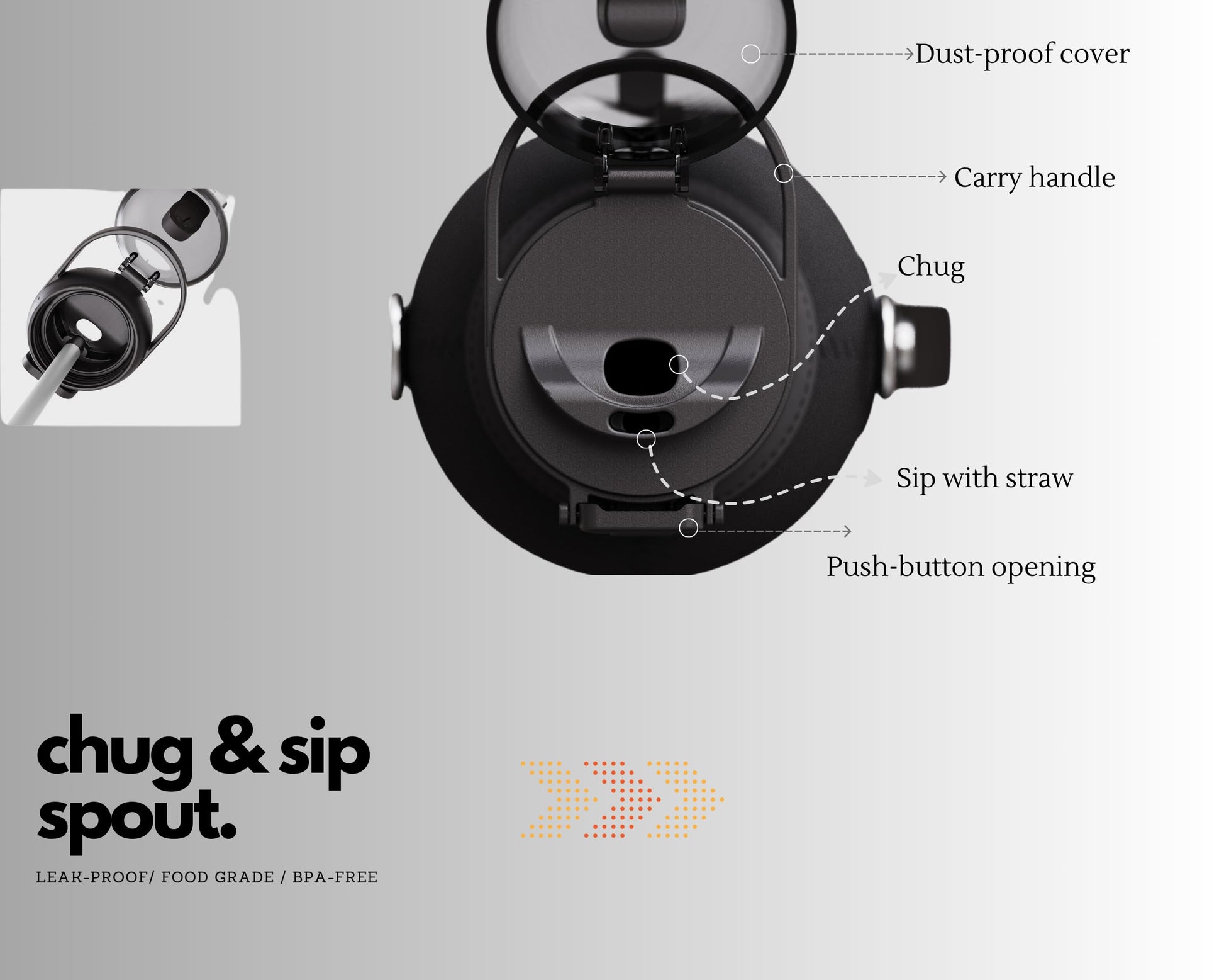 - Sipping/Chugging Duo-Flow Lid: Enjoy the convenience of two drinking options in one lid! Our flask bottle features a unique spout with dual outlets β a smaller one for sipping through the included silicone straw and a larger one for quick chugging.