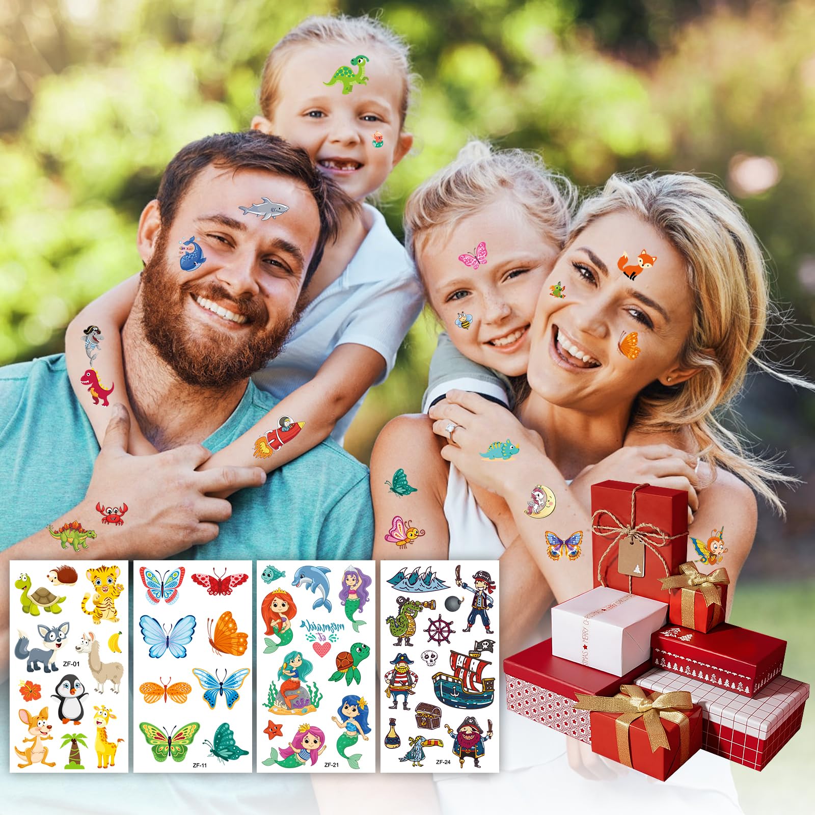 - Variety of tattoos stickers for kids: 300+ kids tattoos set. Temporary tattoos include space, dinosaurs, animals, butterfly, fish, etc. The rich content provides hours of creative fun and subtly influences children's imagination and creativity