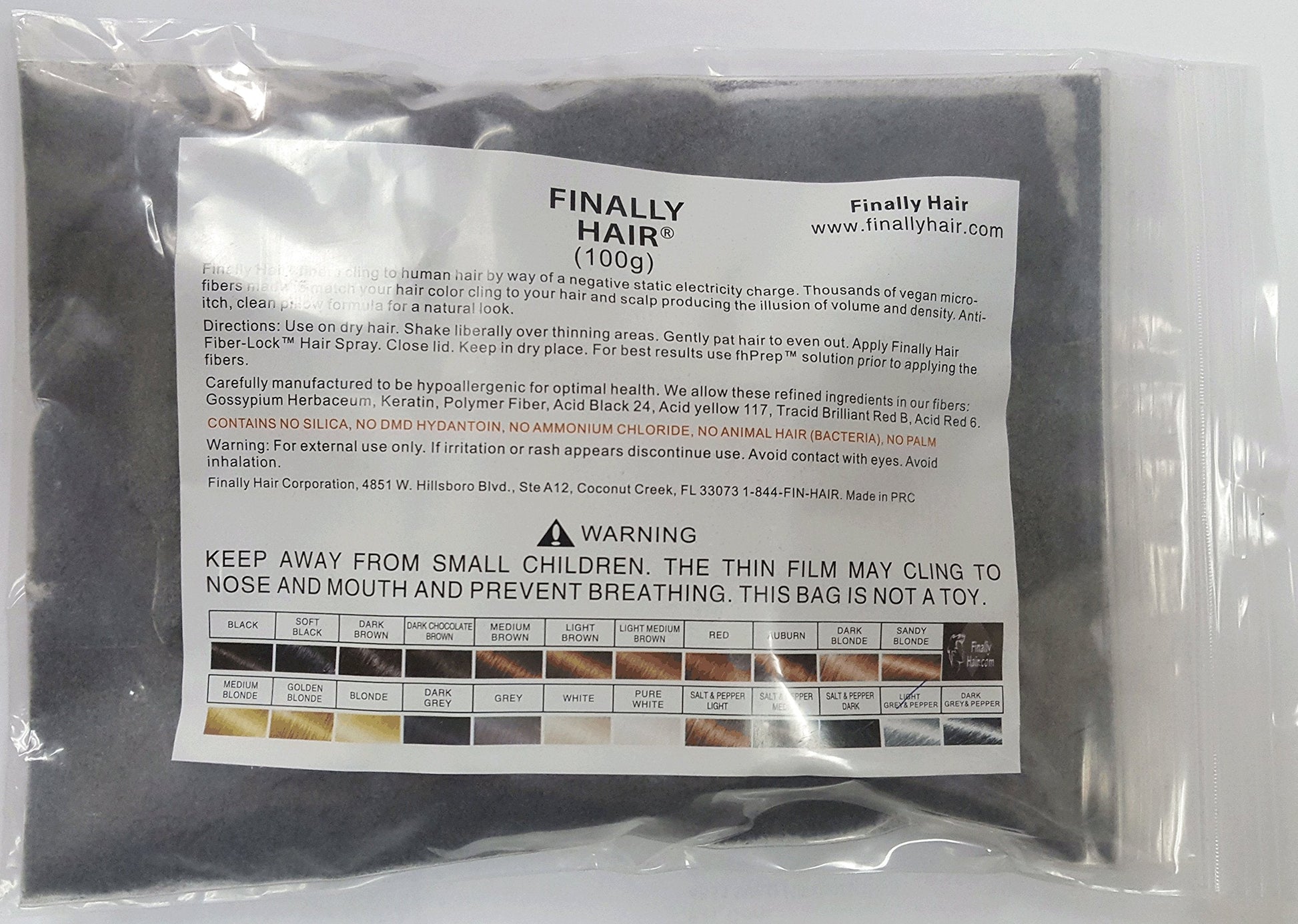 - Hair building fibers in 23 colors. Anti-Clump fibers for a clump proof real hair effect & undetectable finish: Finally Hair Hair Thickening Fibers are the premium solution to instantly disguise thinning and patchiness at the crown and along the part line. Finally Hair fibers are sold in shaker bottles and refill bags. If you order the refill bag it usually does not come with the shaker bottle (unless it says it does). All shaker bottles open. Usually the sifter at the top of the bottle pulls out