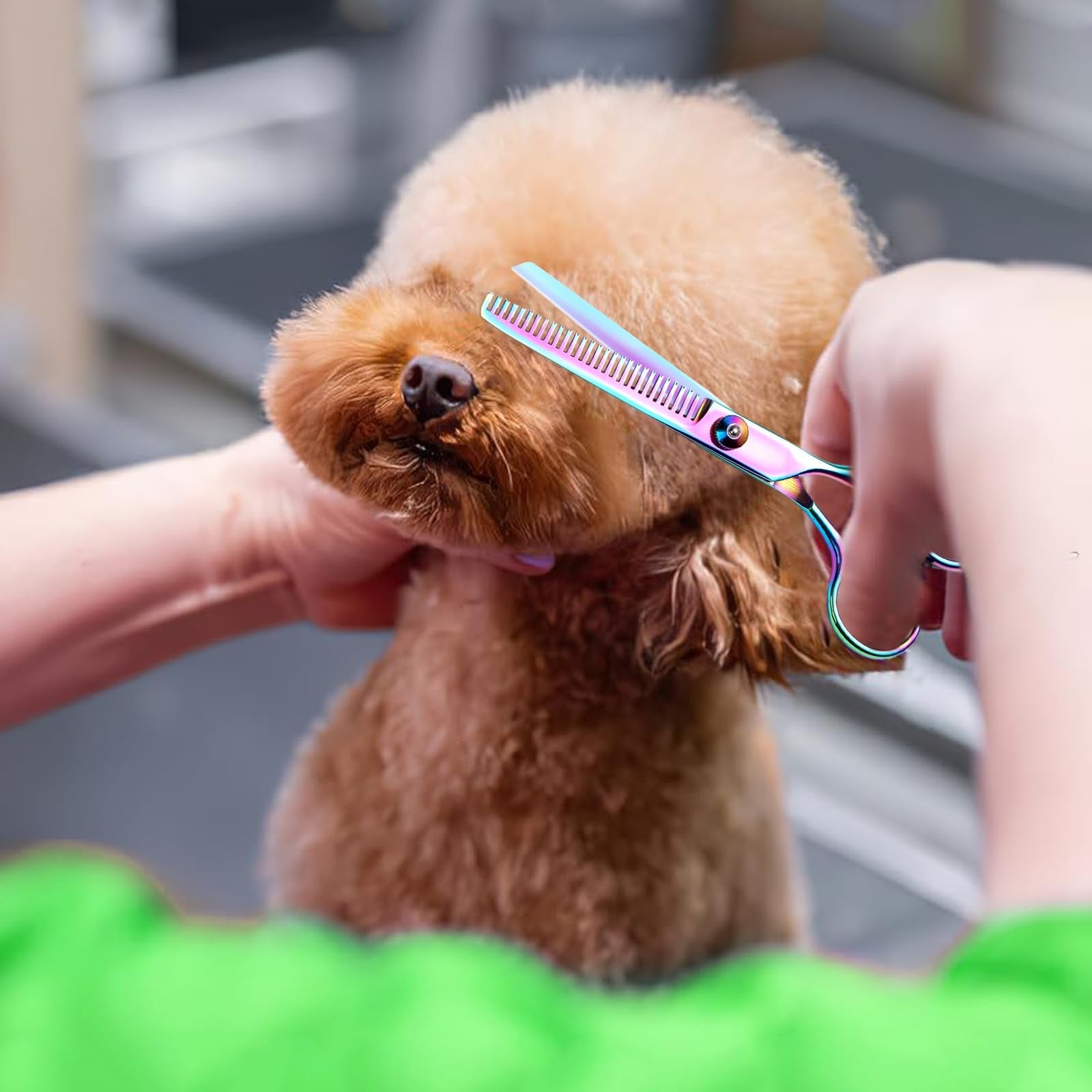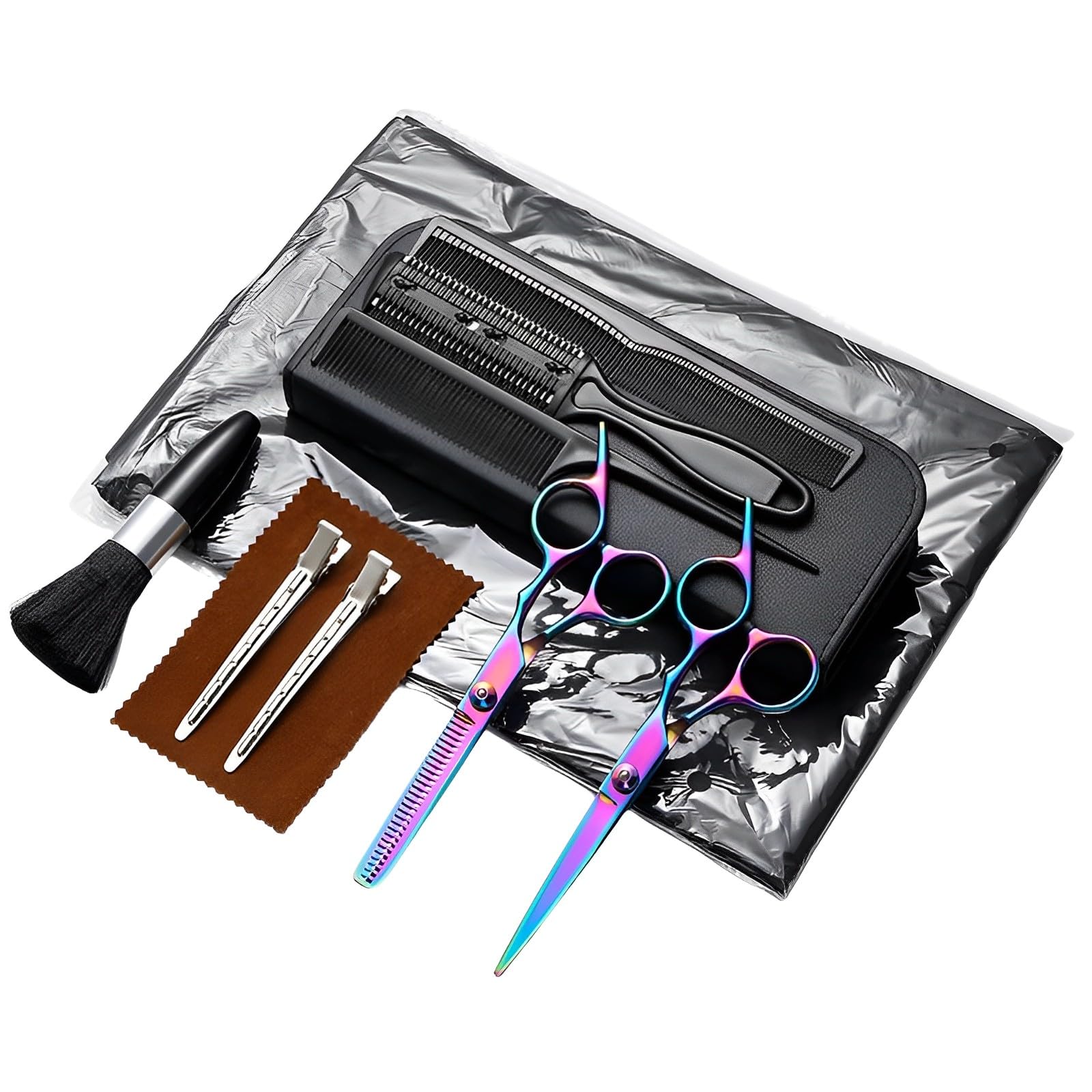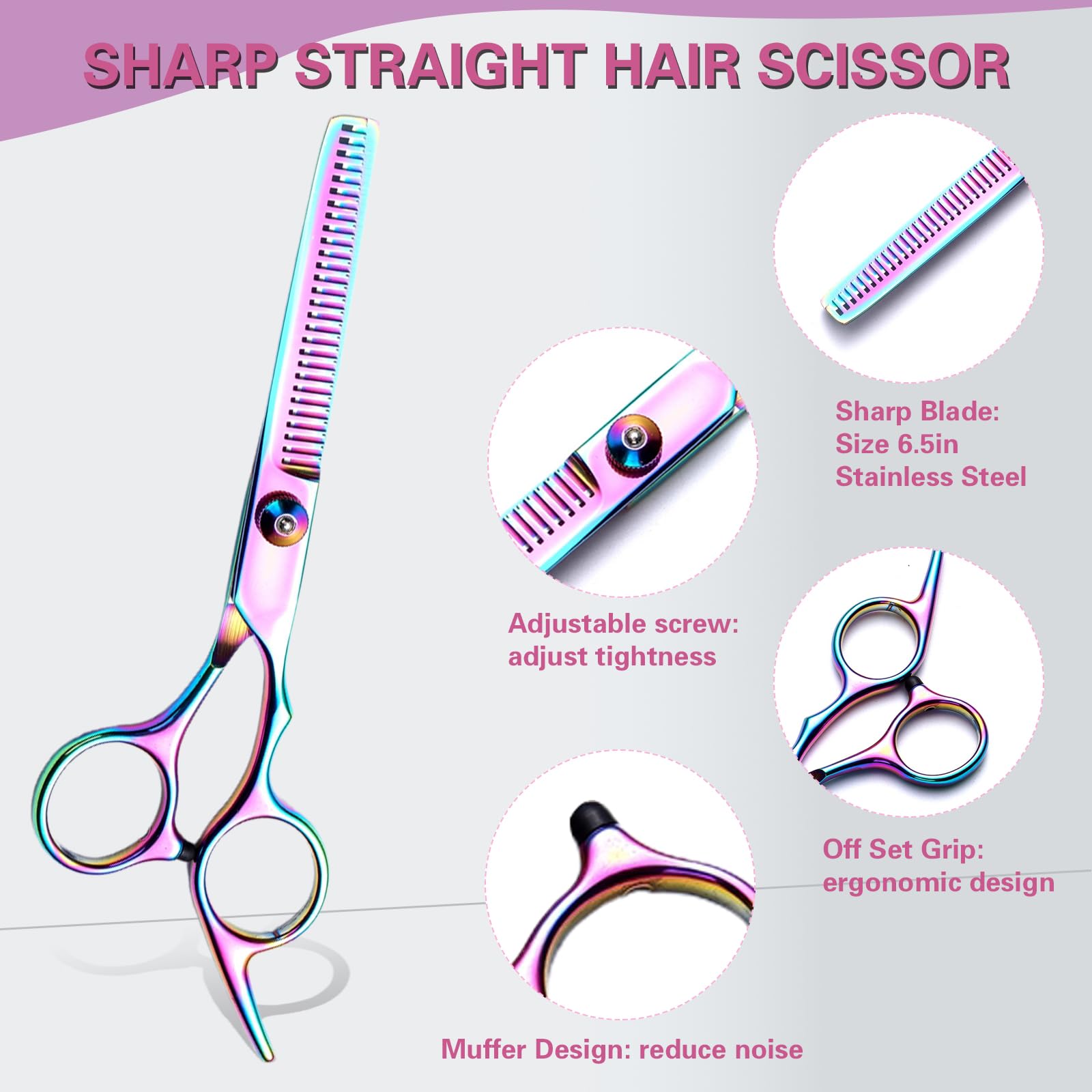 Hair Cutting Scissors Kit 11PCS, Hair Scissors Professional Haircut Scissors with Japanese Stainless Steel Hair Shears, Thinning Shears, Haircut Accessories in Leather Case for Salon/Home (Rainbow)