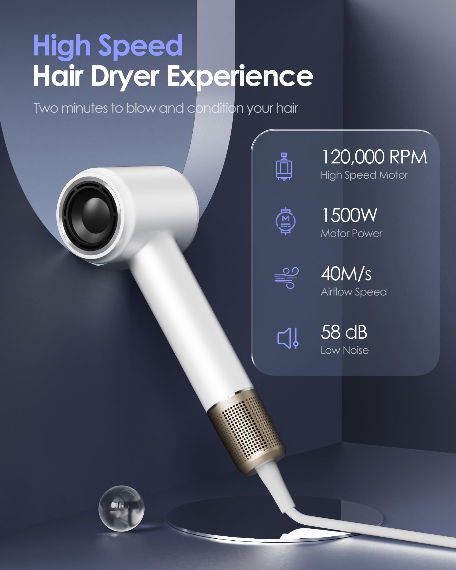 - [Super Fast Drying] Experience lightning-fast drying with our advanced high-speed hair dryer. With a maximum wind speed of 40m/s, it instantly removes moisture from your hair, Simplify your hectic mornings while still looking beautiful. and Maintains all-day dryness and comfort