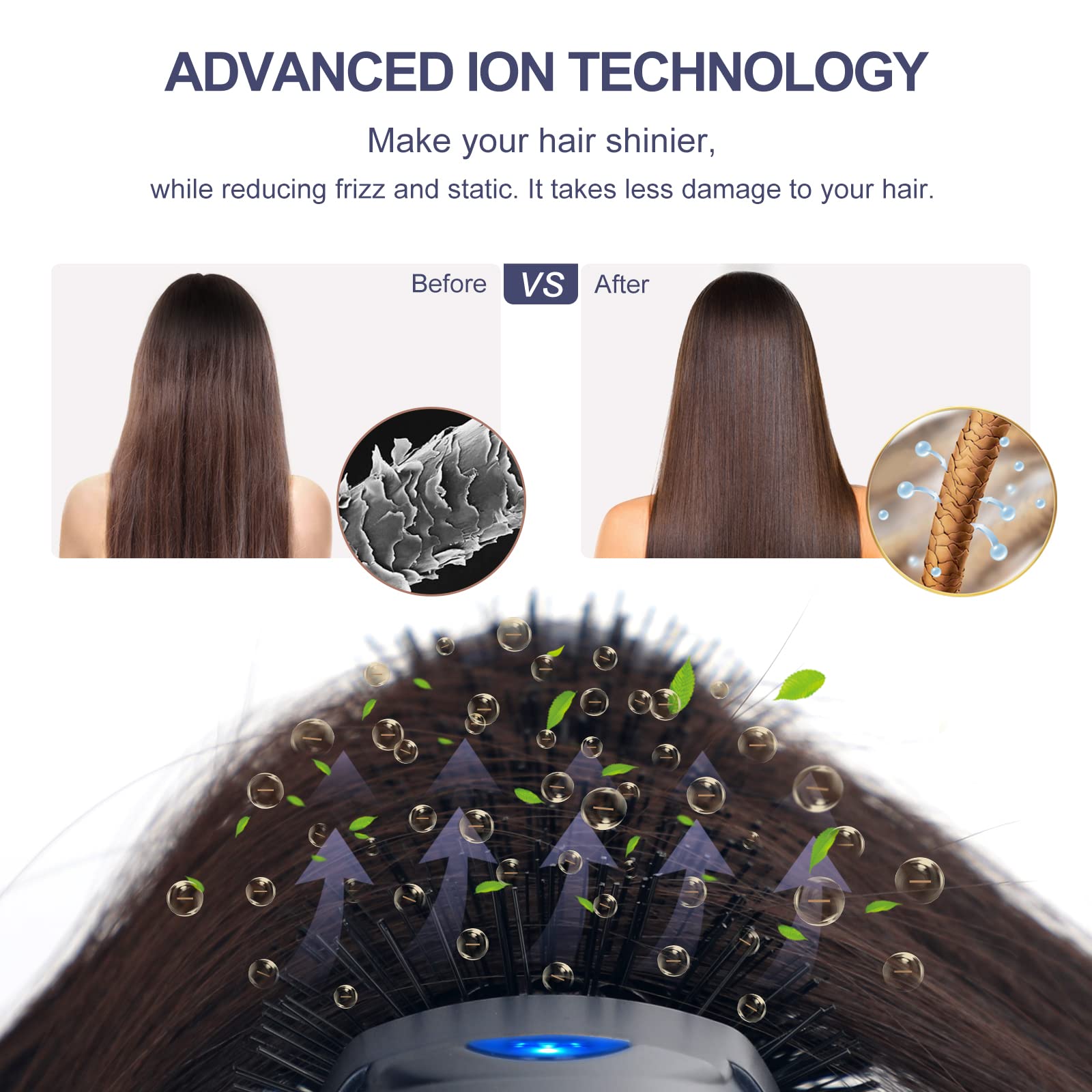 - CERAMIC COATING & ION TECHNOLOGY: Ceramic Coating protects your hair from over-styling with even heat distribution that penetrates hair quickly from the inside out for less damage. The negative ions released by the hot air brush can increase the moisture of the hair, this will help condition your hair and nourish damaged hair.