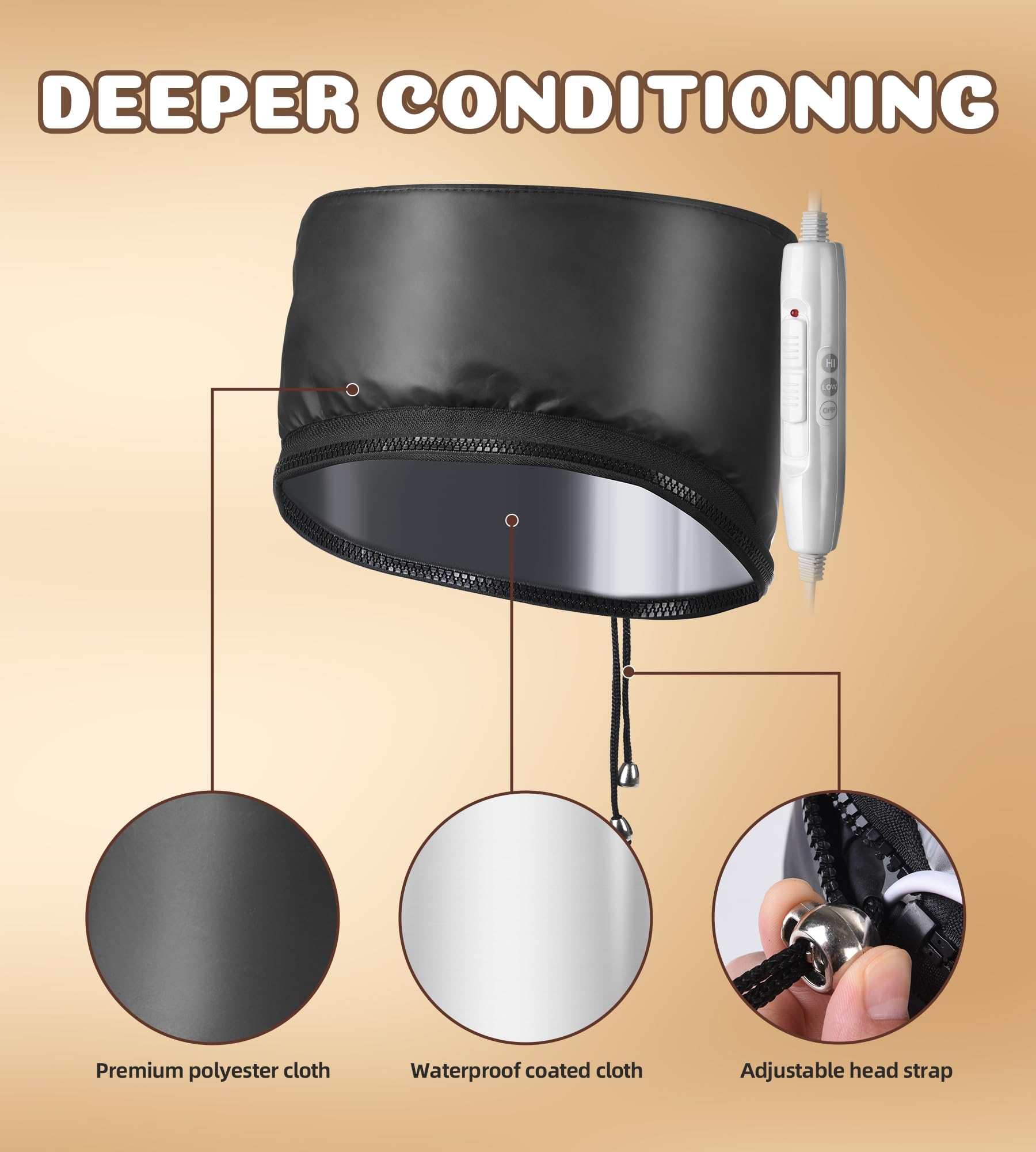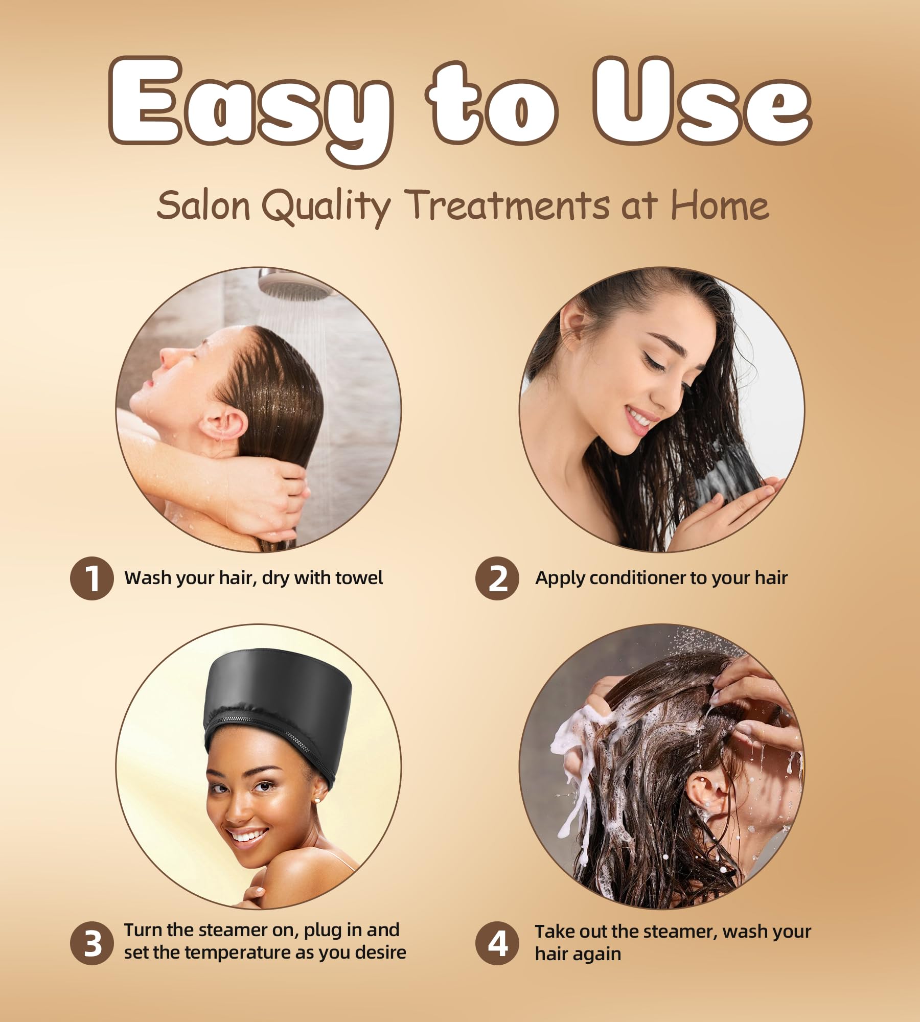 Hair Steamer Cap for Natural & Curly Hair - Safety Temperature Control, Quick Heat Up, Deep Conditioning Spa Treatment for Home Use