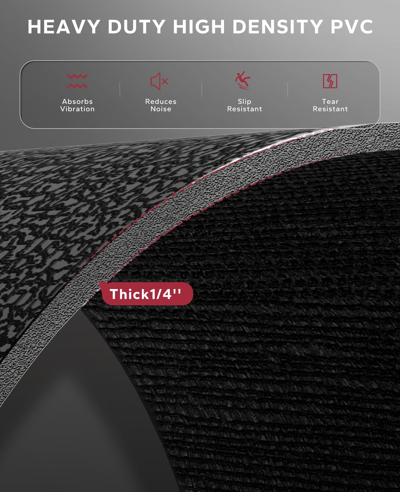 - Easy to Clean and Sweatproof: The waterproof and sweatproof design of the mat makes cleaning a breeze, ensuring that your equipment stays in top condition. Its non-slip surface also prevents machine movement during intense workouts.