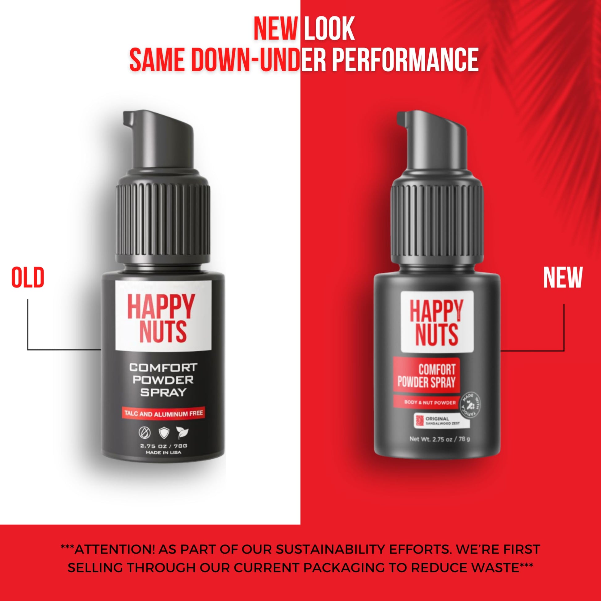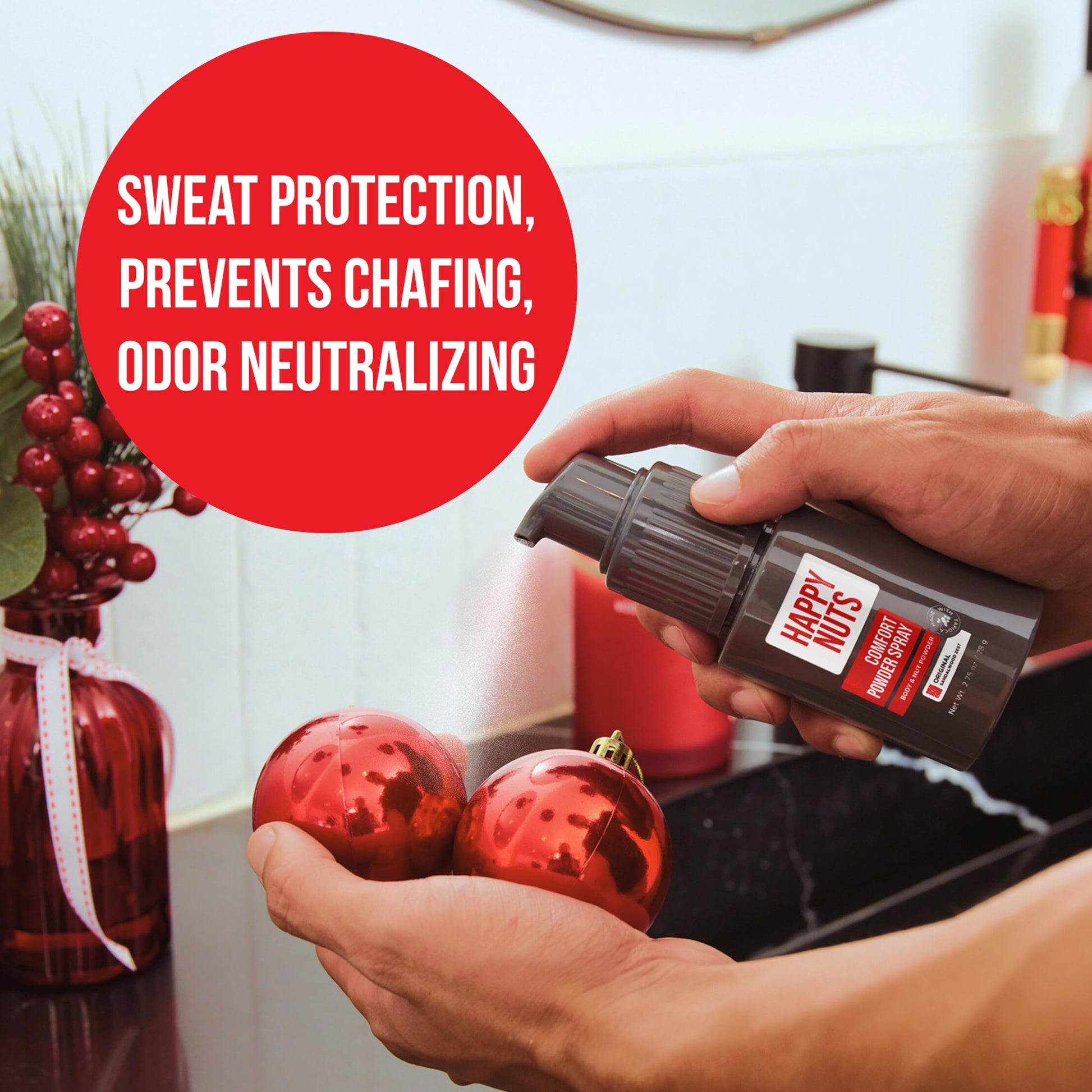 Happy Nuts Comfort Powder Spray: Anti Chafing & Mens Deodorant, Aluminum-Free, Sweat and Odor Control for Jock Itch, Groin and Men's Private Parts (2.75 Ounce (Pack of 3), Original)