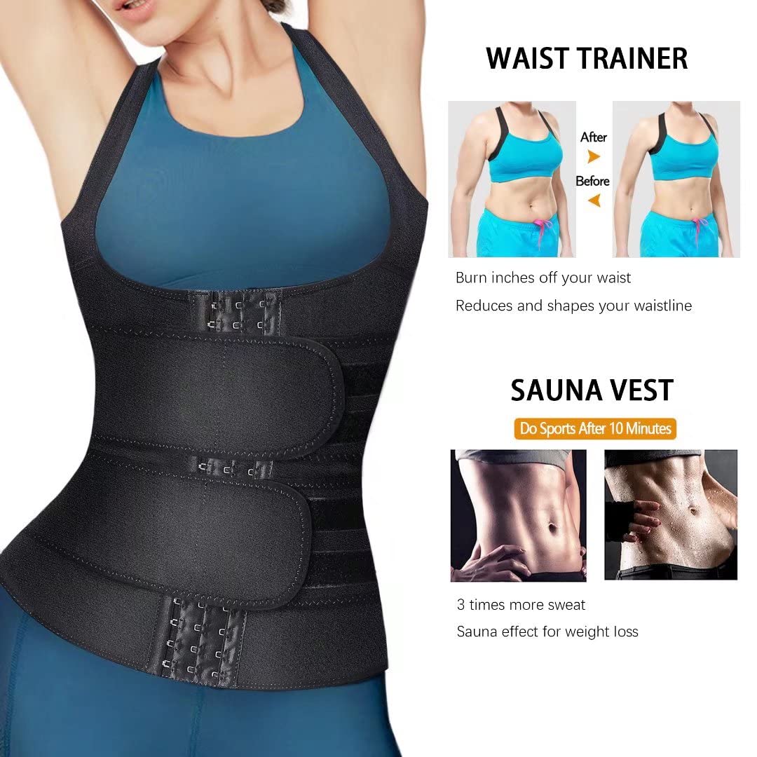 - DOUBLE LAYERS TUMMY CONTROL: Continuous full and sweat bands Coverage for the tummy, make sure you reach your new fitness goals faster and easier than expected. Our waist trainer corset and trimmer Vest is ultra-lightweight with a flexible fit, which makes it an ideal workout gear!