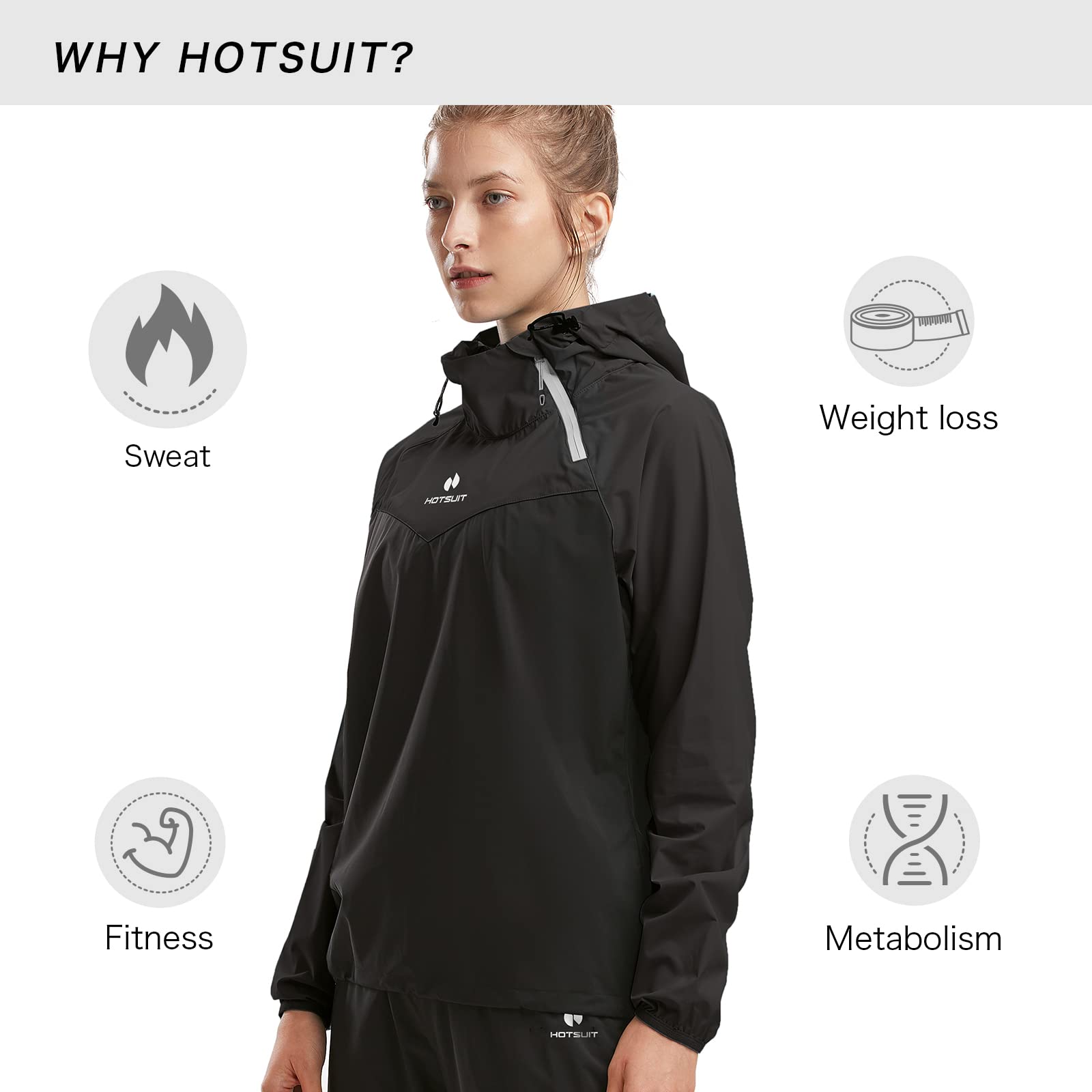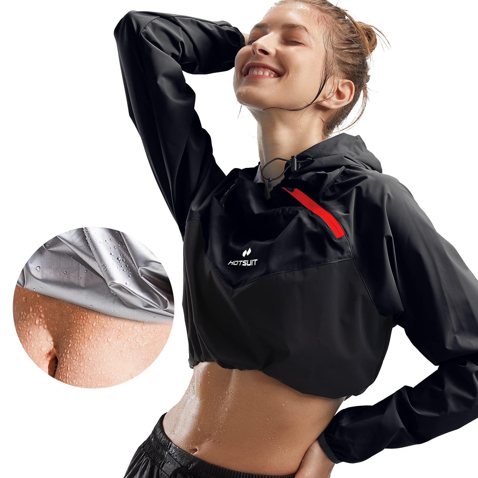 HOTSUIT Sauna Jacket Women Sweat Jacket Weight Loss Workout Gym Exercise Sauna Suit Shirts, Black, M