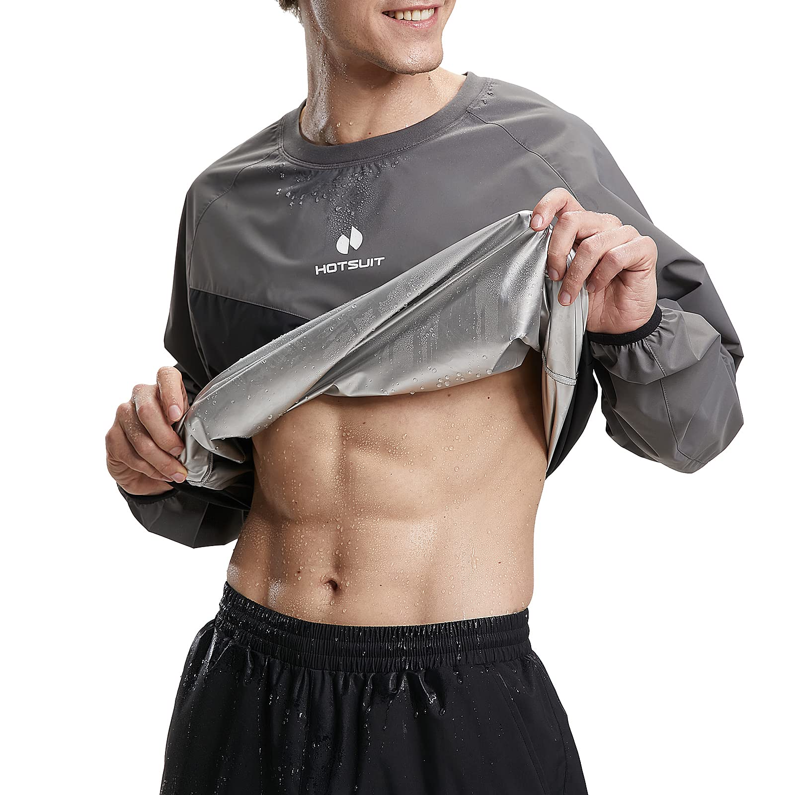 - Lightweight, completely not impacting movement and workout: Specially designed with HOTSUIT abrasion resistant fabric to reflect heat to your body and make you sweat 5 times more. Help sweat more with this HOTSUIT men's sweatshirt. Ripstop material allows you to do any movement in sports.