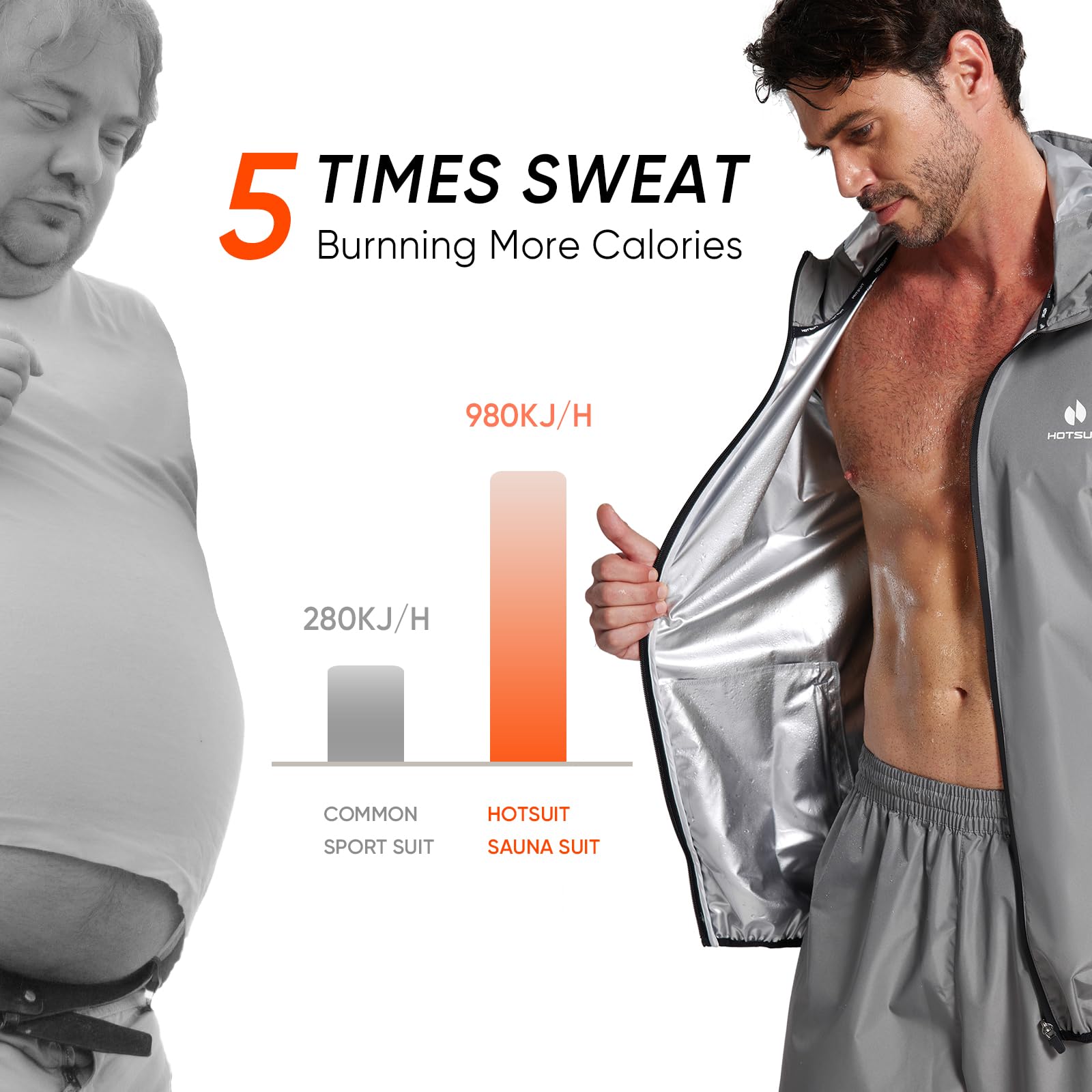 - Sweat Profusely: Hotsuit Sauna Suit for Men is designed to trap heat around your body and generate more sweat than working out in regular gear. Wearing sweat suit accelerates loss in body weight, detoxification through sweating and boost your metabolism