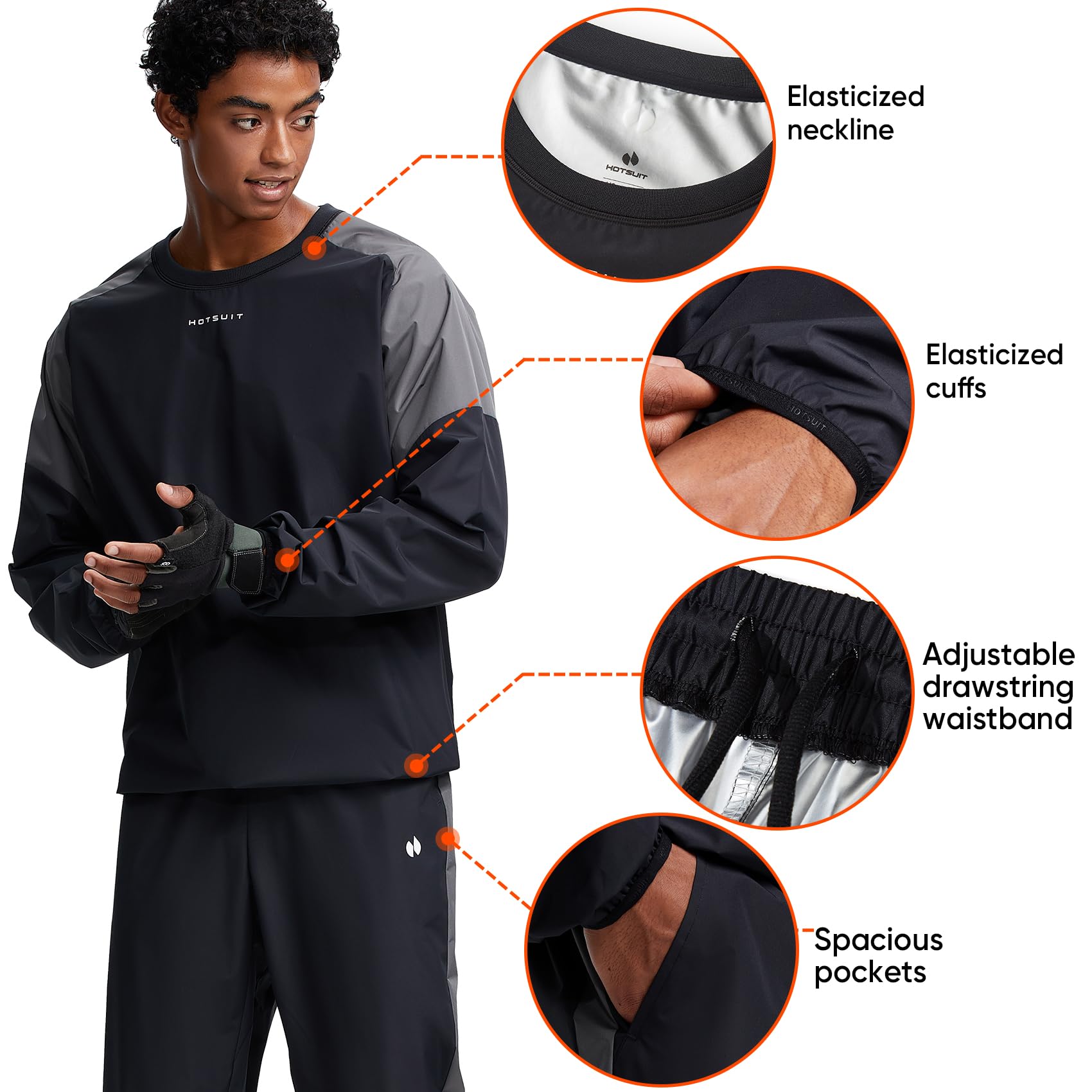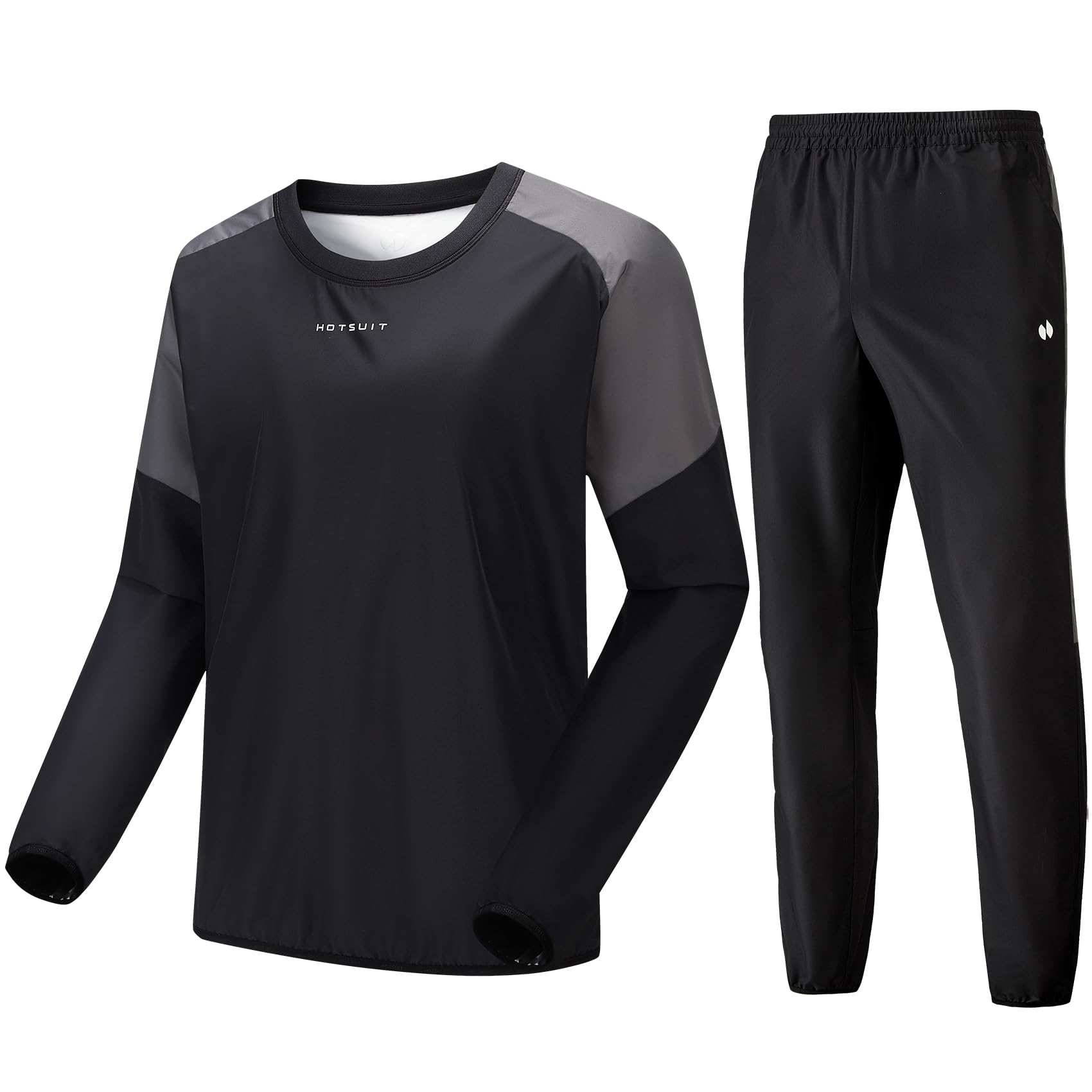 HOTSUIT Sauna Suit Men Sweat Suits Anti Rip Gym Exercise Workout Sauna Jackets Pants, Black, M