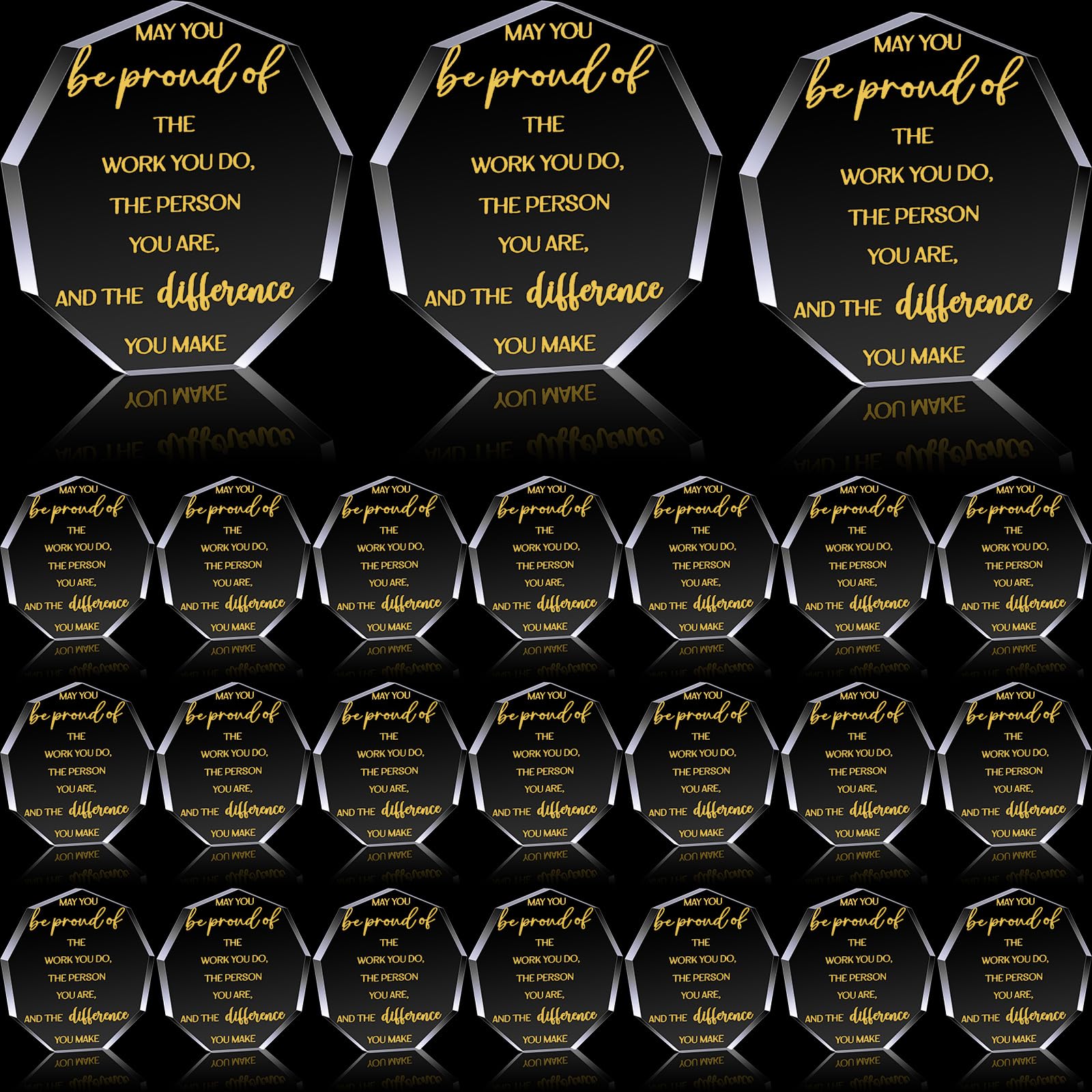 - Abundant Quantity: with the package including 24 pieces of appreciation gift awards, you'll have plenty of trophies to reward and express gratitude to multiple individuals or teams; You can also decorate your home and office with these acrylic trophies to create a positive work or study atmosphere
