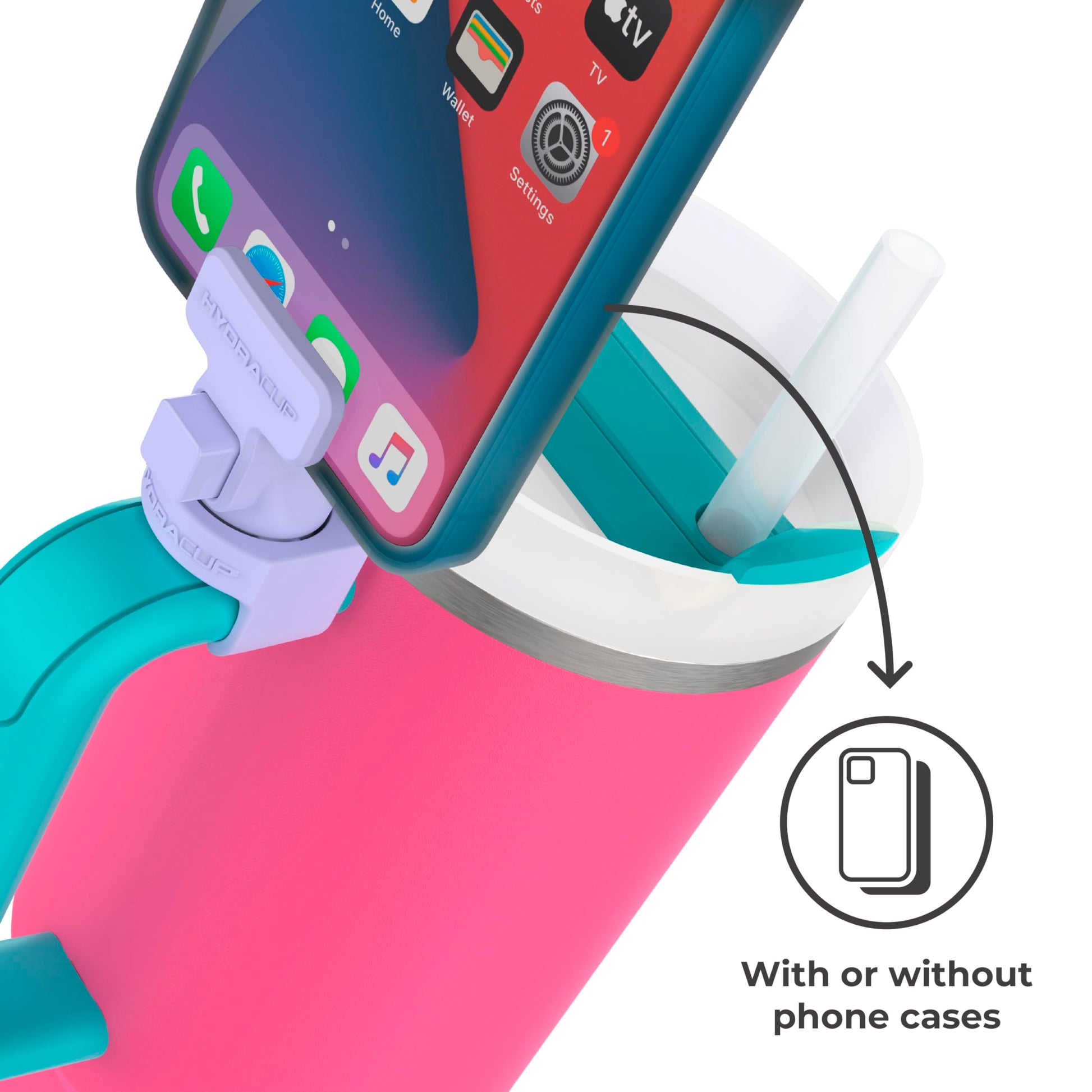 HydraClip Phone Attachment - Watch, Carry, Record, & Stay Organized, Use as Phone Stand or Tripod, Hands Free Detachable, Stanley Cup Accessories, Spring Loaded Secure Grip (Purple)