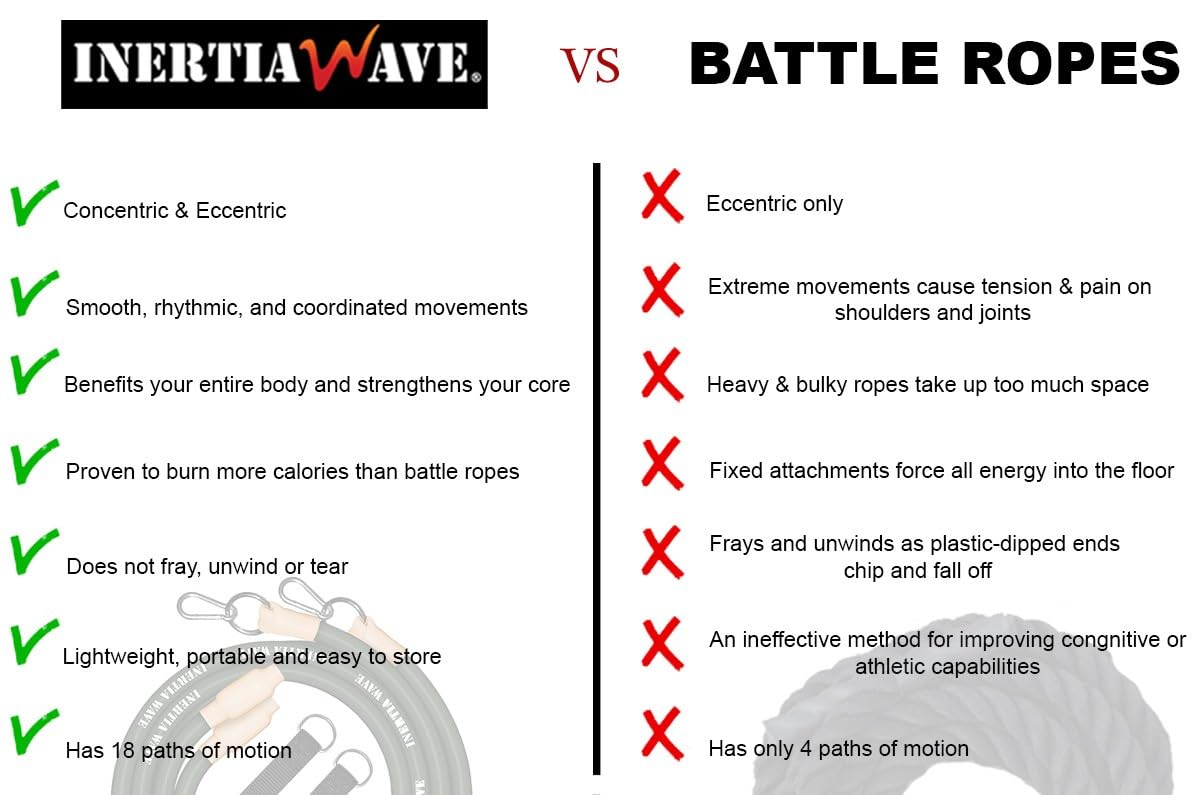 - NOT YOUR TYPICAL BATTLE ROPE - Weighing in at under 2.7 pounds, its lightweight design ensures portability and convenient storage. Compared to the heavy, bulky ropes that will clutter your workout space, you can now say goodbye to fraying, unwinding, or tearing ropes. The Inertia Wave is a must have exercise equipment that is built to last