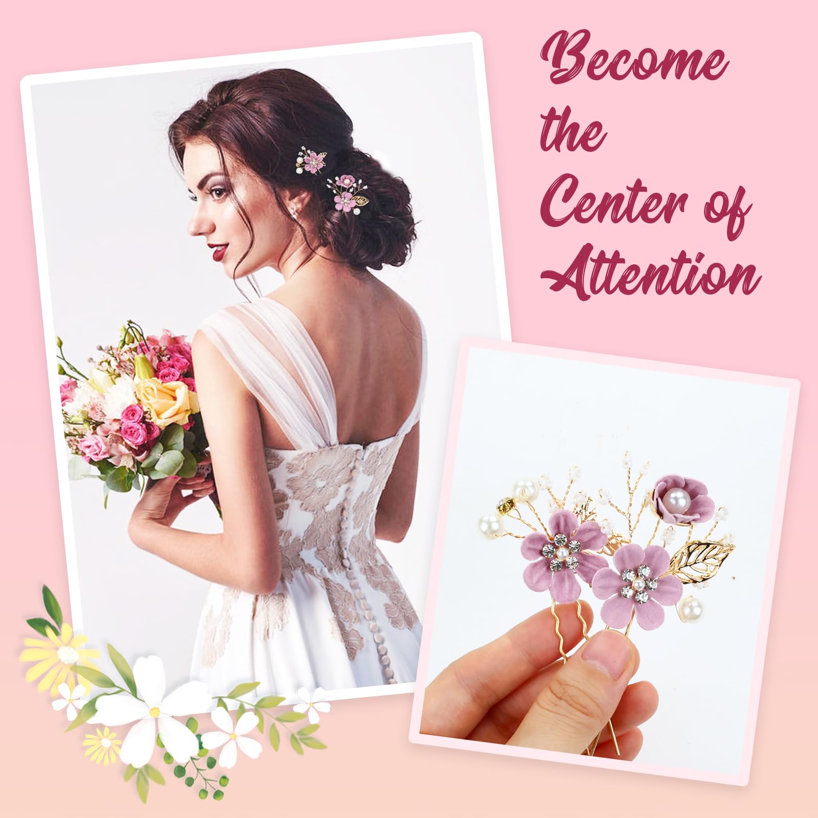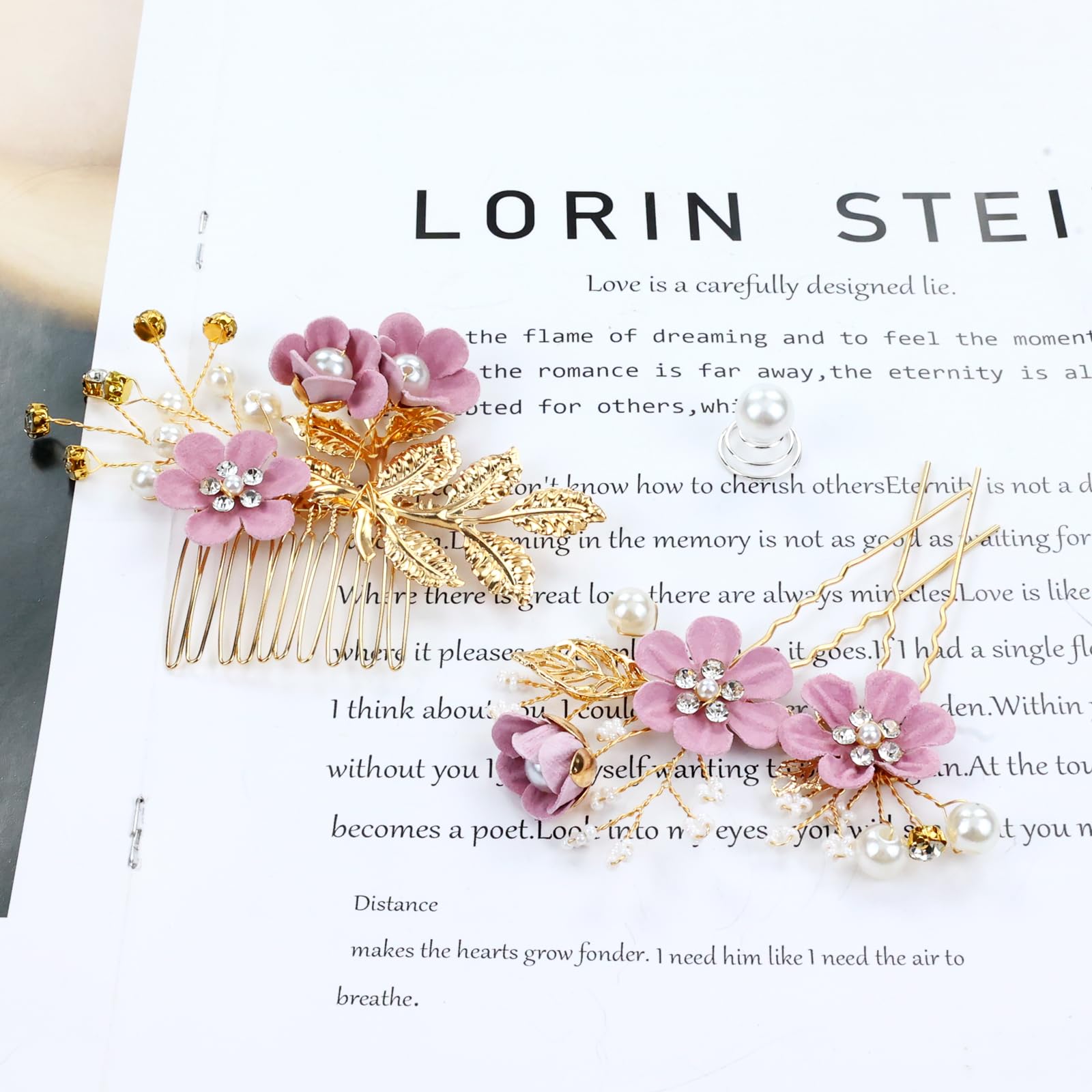 - Design: Well made bridal hair accessories. Flower hair side combs and hair pins with artificial rhinestones and pearls decoration. Beautiful look and easy to use. They are good assistant for you to DIY your own hairstyles. Make women, brides, bridesmaids or flower girls more charming and graceful.