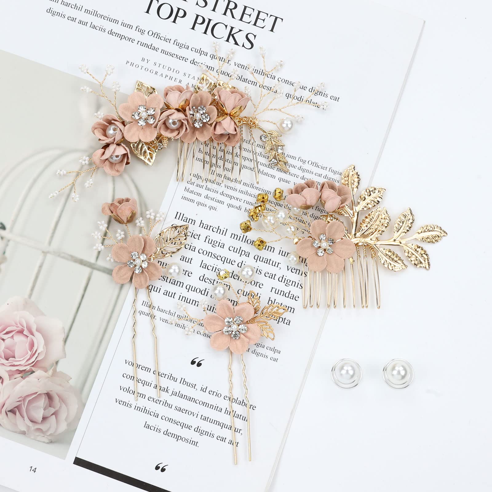 - Various Sizes Collection: See the size photo on the left. Different sizes and styles wedding pink floral hair accessories are enough for you to do your hair styles.