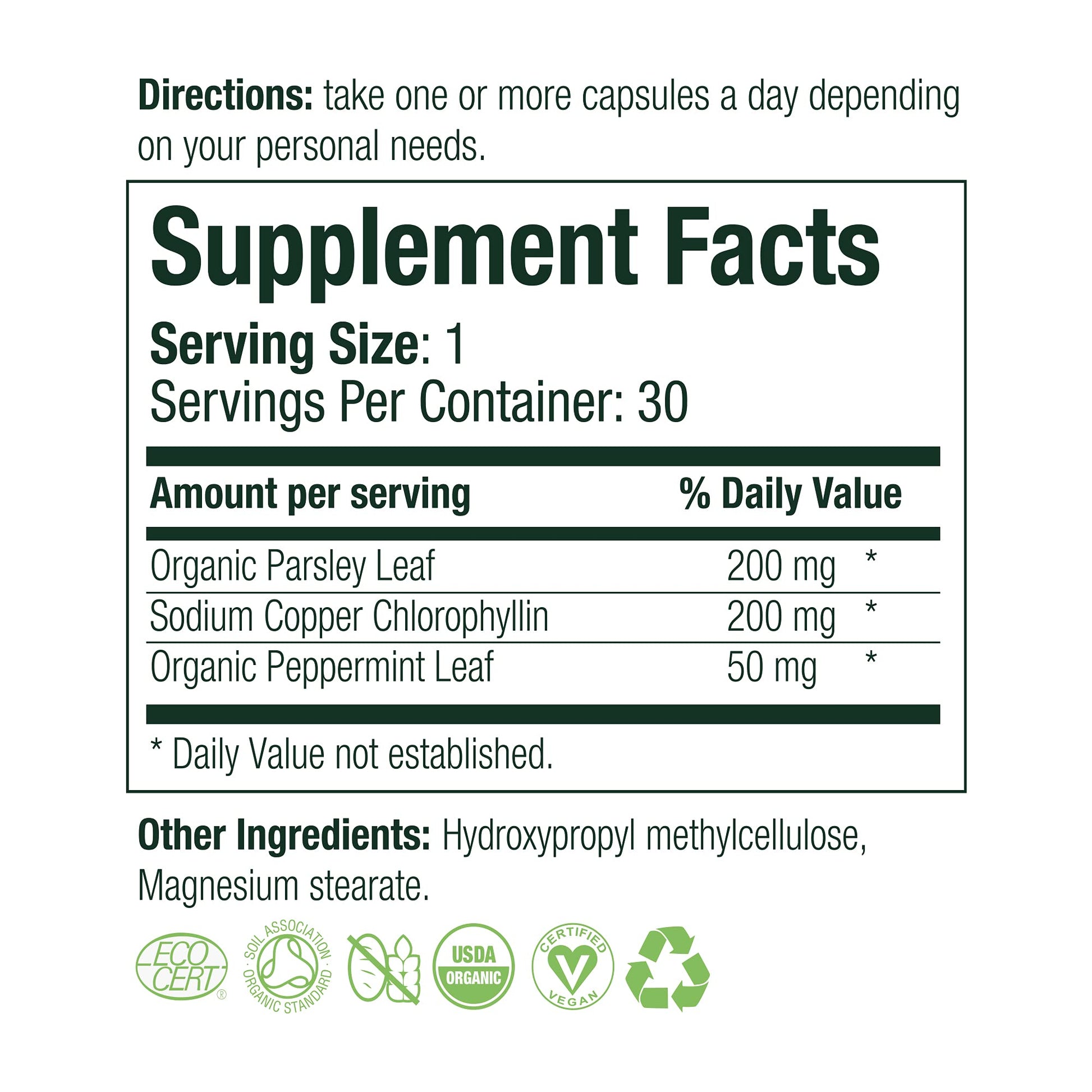 - NATURAL ODOR ELIMINATION: It Just Works features 3 superstar ingredients, organic parsley for cleansing, organic peppermint for freshness, and sodium copper chlorophyllin, an optimized organic chlorophyll compound with deep detoxifying properties.