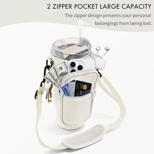 - 【Adjustable Strap】Water bottle holder with adjustable and detachable strap, adjustable range is 24-48 inches, fits most people's body sizes. Adjust the shoulder strap to the shortest length and use it as a handle.
