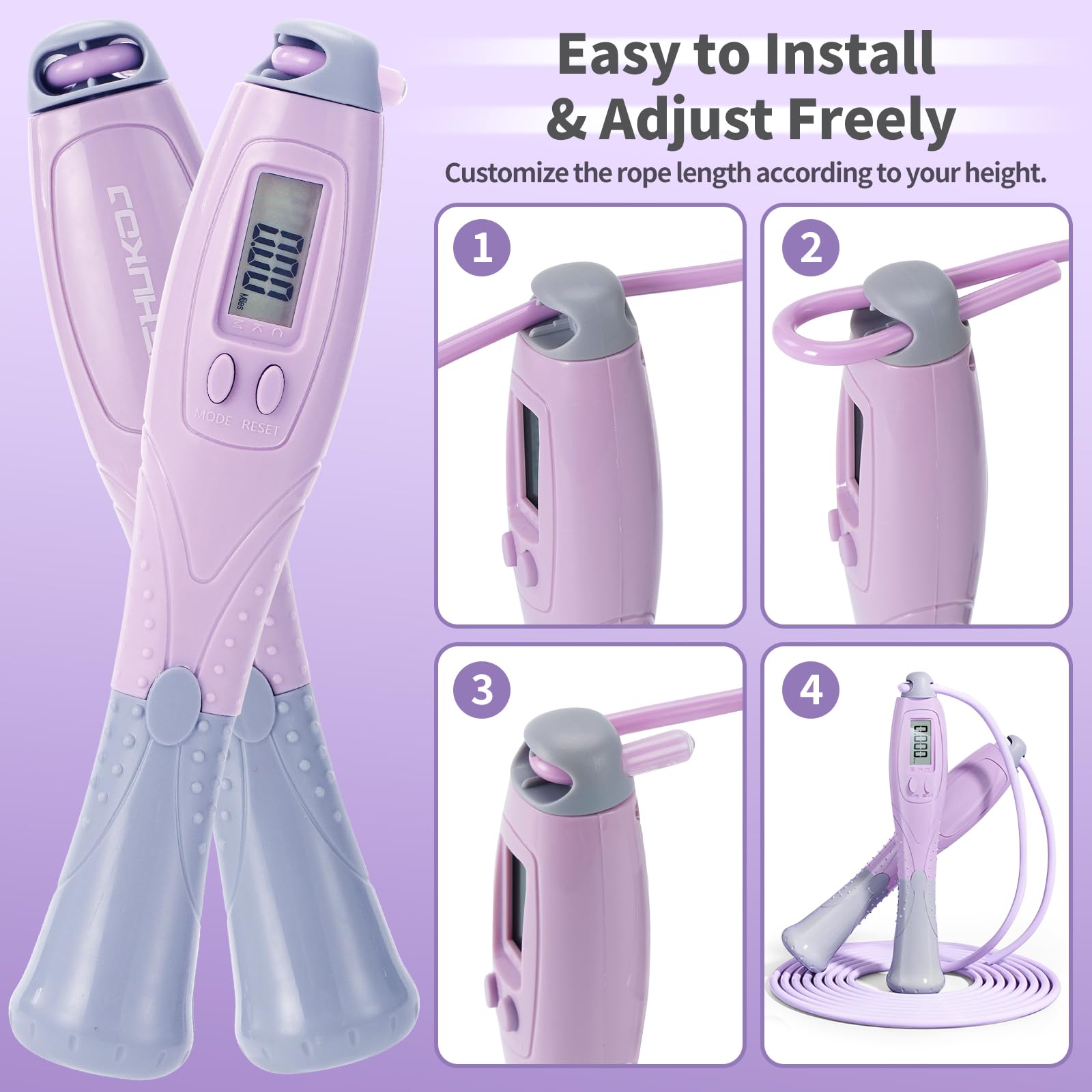 - Jump Rope with Counter - Smart Fitness Tracking:Achieve precision in tracking jumps, distance, and calorie burn with our workout jump rope's built-in smart counter. The LED screen ensures real-time progress, motivating you to achieve fitness goals faster. A must-have for jump ropes for fitness enthusiasts.