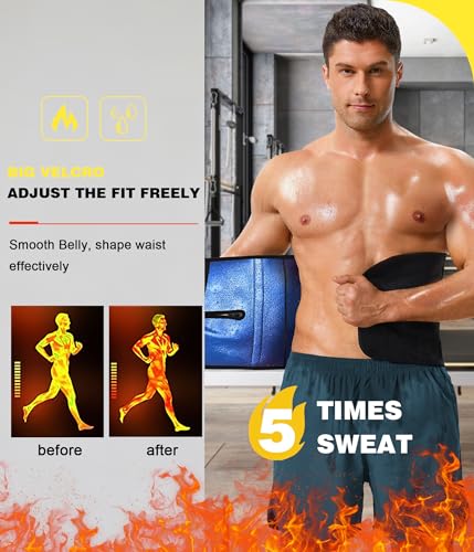 Junlan Waist Trainer for Men Sweat Waist Trimmer Belt for Stomach (Blue, Medium)