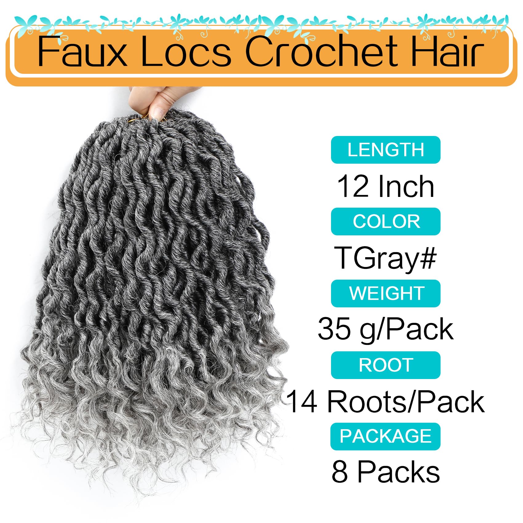 Karida Goddess Locs Crochet Hair 12 Inch, 8 Packs Upgraded Crochet Hair for Black Women, Pre Looped Crochet Faux Locs With Curly Ends (12 Inch (Pack of 8), TGray#)