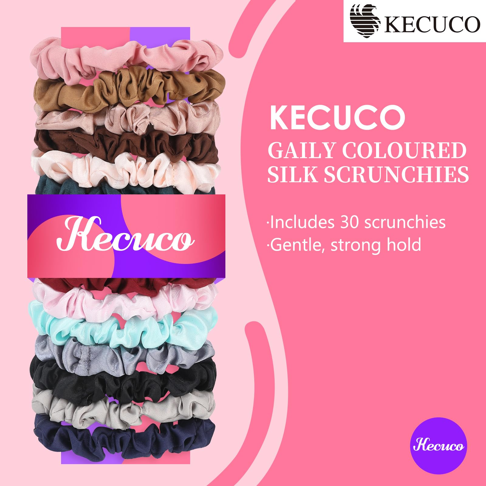 KECUCO 30Pcs Small Silk Satin Hair Scrunchies, Hair Ties for Women Girls Hair Accessories Gift (Multicolor A)