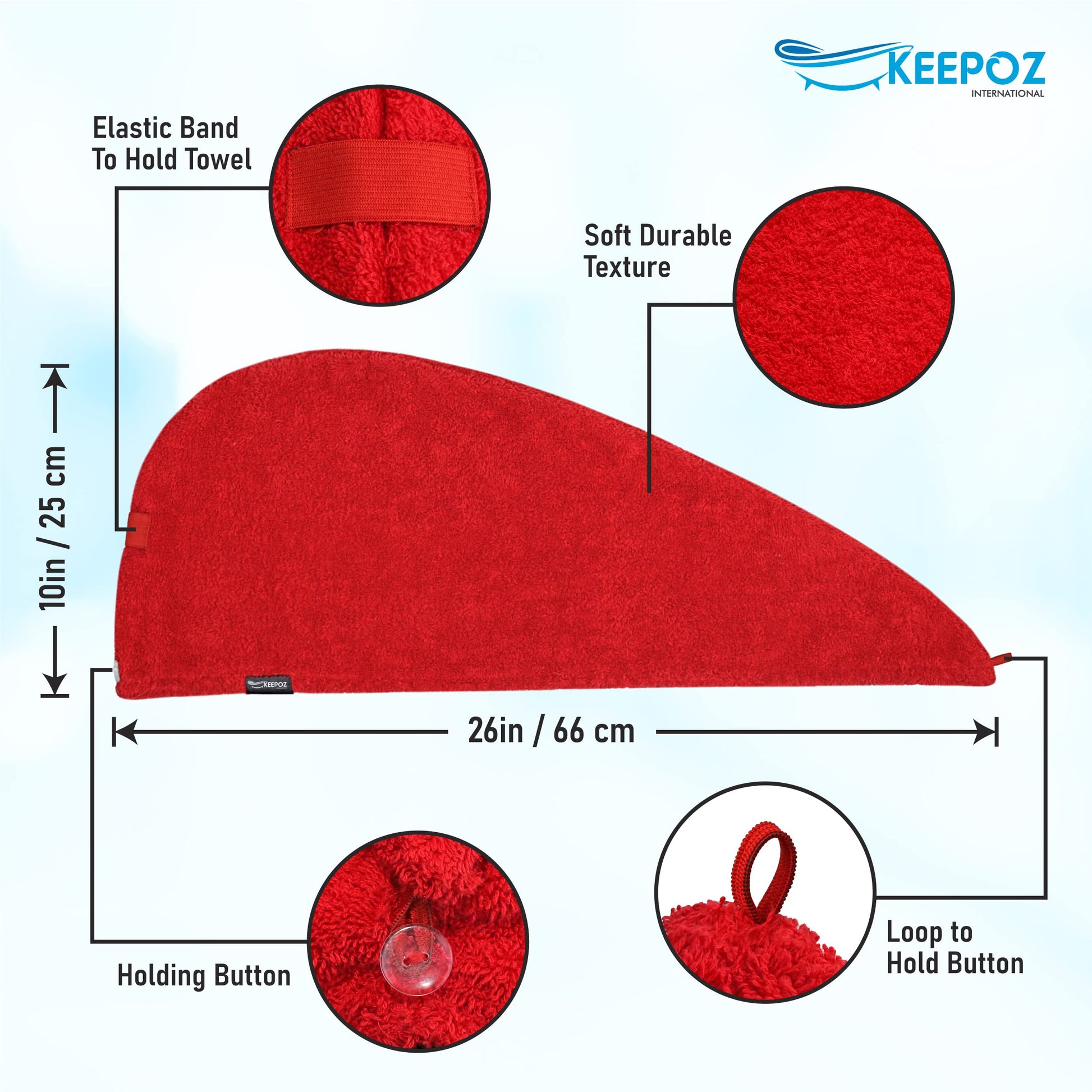- πΈπππ% ππππππ ππππππ: KEEPOZ 100% cotton towels best fits in hair accessories and are better than microfiber towels in many ways. Our cotton hair towel is made of a long staple natural fibre, has nice thick terry loops, it has a plush feel and is more durable, its safe for your Skin and hair. It keeps your hair held up high and hands free for a lovely spa treatment, working on the computer or doing Makeup.