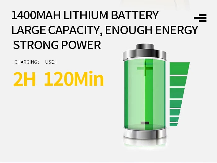 13.USB Rechargeable & LED Display:High-quality LCD display screen, which can show the percent of available time and speed,2Hours charging time, above 120 minutes working time.