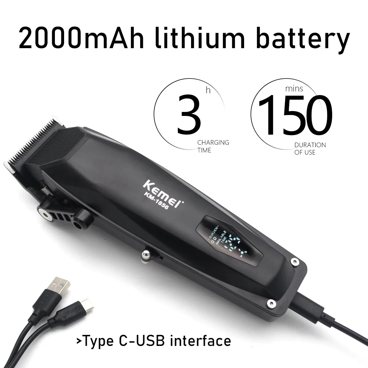 Kemei KM-1856 Men's Hair Clipper LED Display Cordless USB Interface Professional Hair Cutting Machine Hair Trimmer Haircut