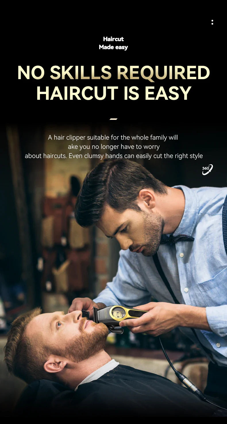 Rechargeable Cordless,Convenience Experience the freedom of our professional hair and beard clipper, featuring a robust cordless design and USB fast charging. Enjoy up to 120 minutes of precise trimming with a single charge for seamless grooming anytime, anywhere. (Matte Black version includes a charging base.)