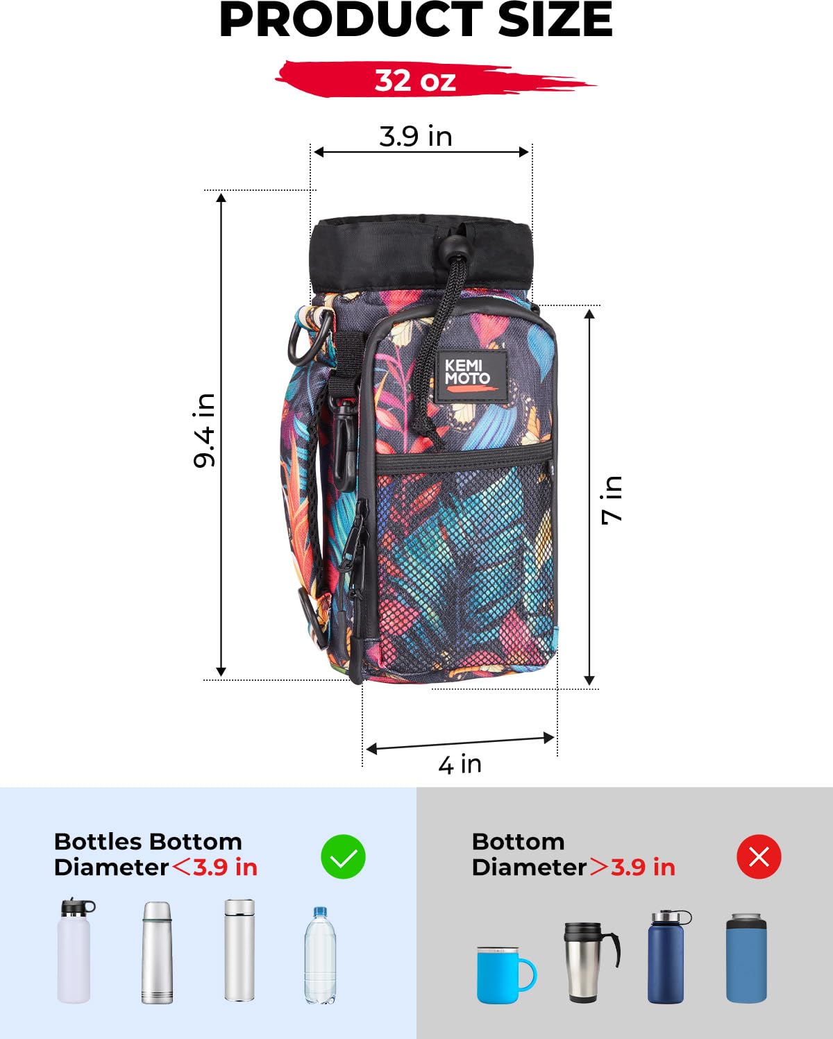 KEMIMOTO Water Bottle Holder Bag, Water Bottle Carrier with Adjustable Shoulder Strap, Water Bottle Pouch Holder for Hiking, Camping, Fishing, Compatible with YETI Stanley SLM 32 oz, 40 oz, 64 oz