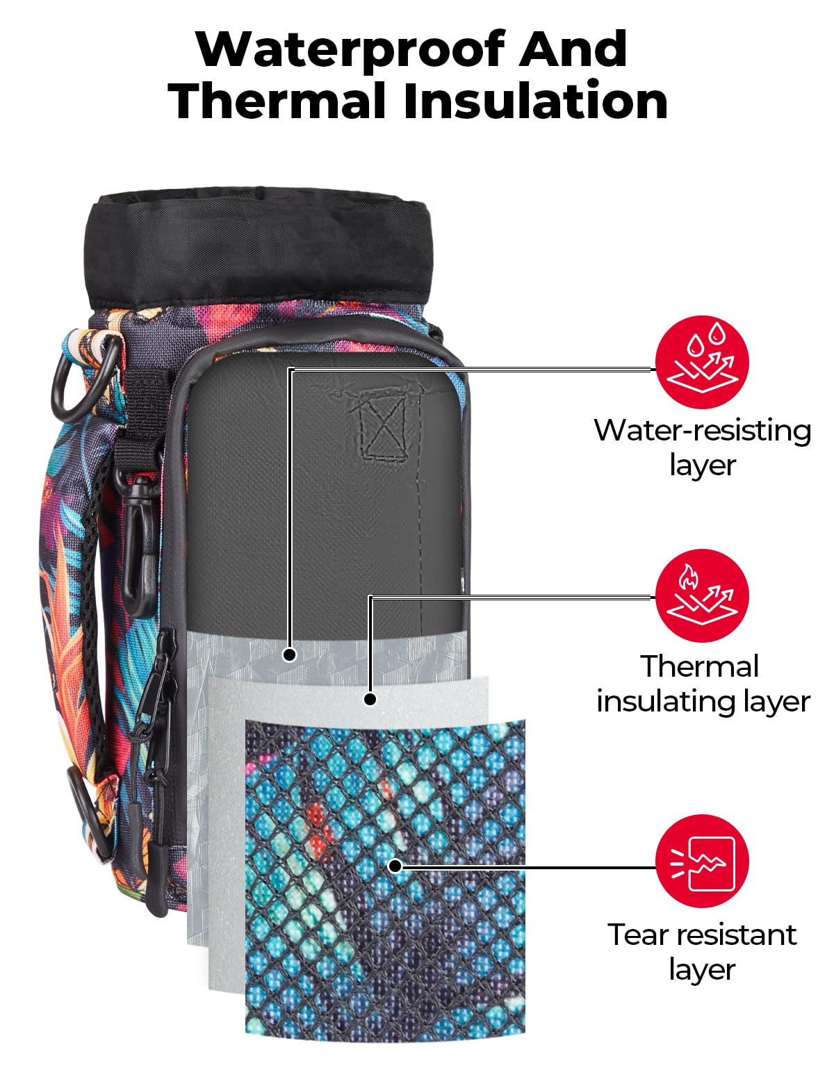 - 【Well-Made】Our KEMIMOTO water bottle carrier with straps is different from other water bottle holders with straps in that it adopts water-resistant, thermal, and tear-resistant technology to increase sturdy. The internal aluminum membrane helps insulate condensation water, while the 600D Oxford fabric outer layer is long-lasting and washable.