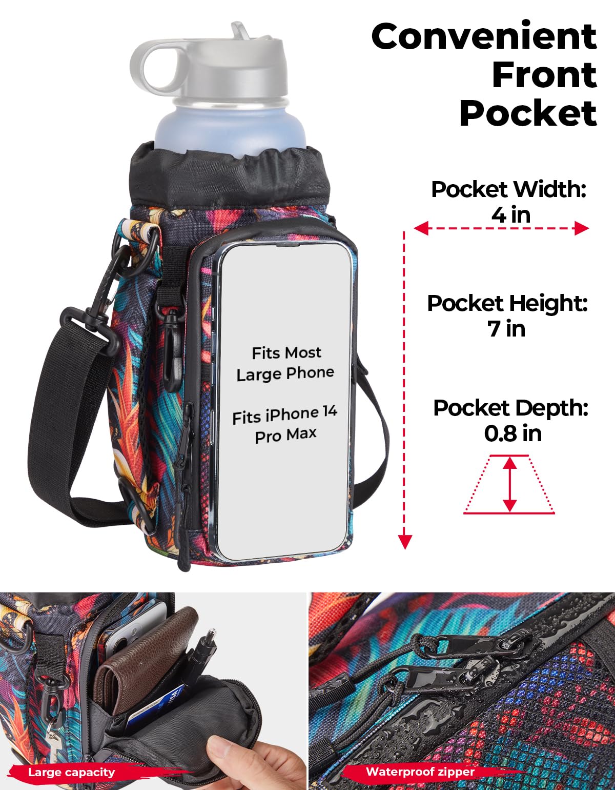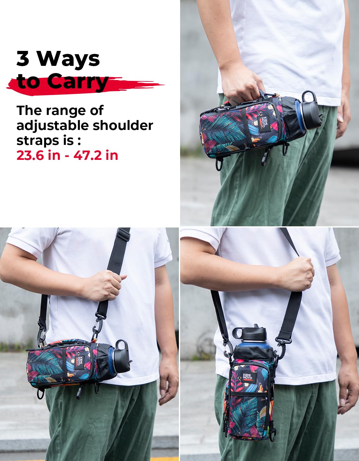 - 【3 Ways to Carry】Our hiking water bottle holder is designed with a handle strap and an adjustable shoulder strap, making it comfortable to carry and allowing you to keep your hands free. Available in three sizes: 32 oz water bottle carrier, and 40 oz water bottle carrier.