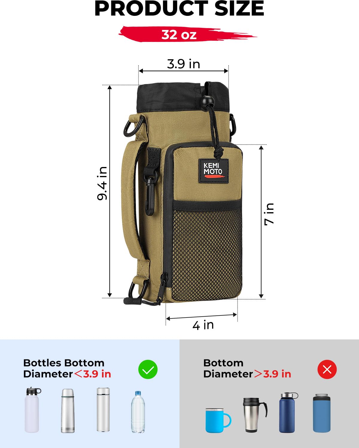 KEMIMOTO Water Bottle Holder Bag, Water Bottle Carrier with Adjustable Shoulder Strap, Water Bottle Pouch Holder for Hiking, Camping, Fishing, Compatible with YETI STANLEY SLM 32 oz, 40 oz, 64 oz