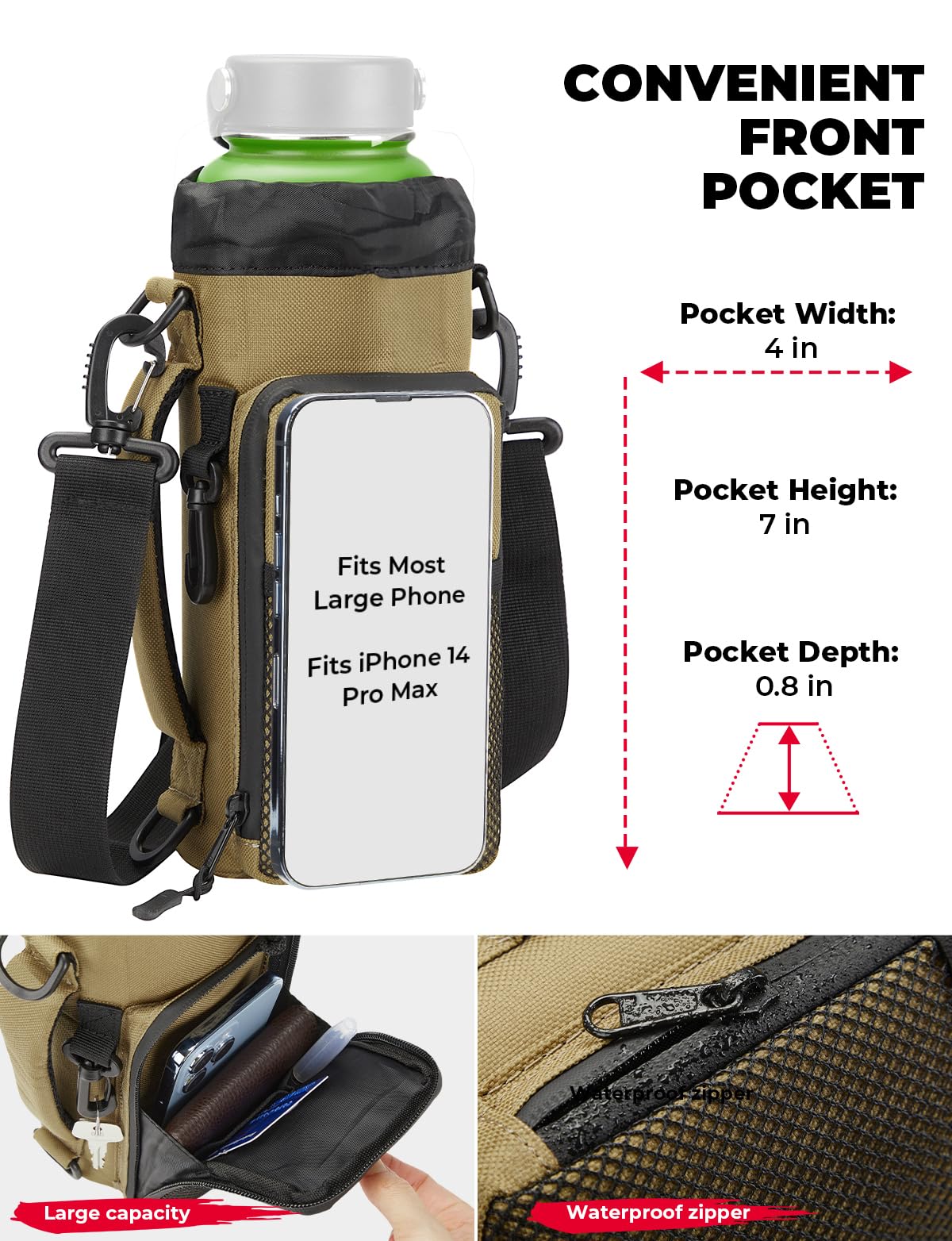 - 【3 Ways to Carry】Our hiking water bottle holder is designed with a handle strap and an adjustable shoulder strap, making it comfortable to carry and allowing you to keep your hands free. Available in three sizes: 32 oz water bottle carrier, 40 oz water bottle carrier, and 64 water bottle carrier.