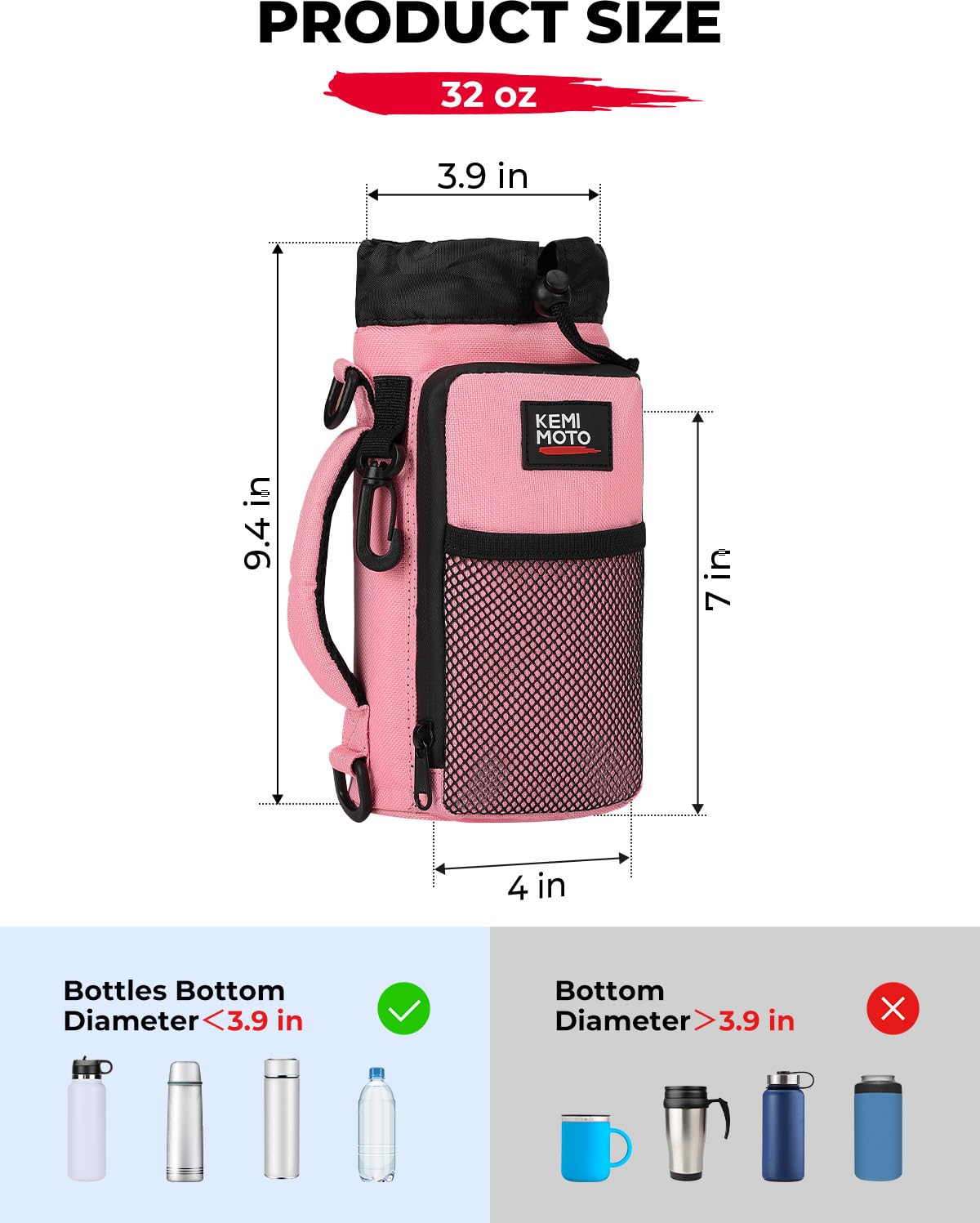 KEMIMOTO Water Bottle Holder Bag, Water Bottle Carrier with Adjustable Shoulder Strap, Water Bottle Pouch Holder for Hiking, Camping, Fishing, Compatible with YETI STANLEY SLM 32 oz, 40 oz, 64 oz