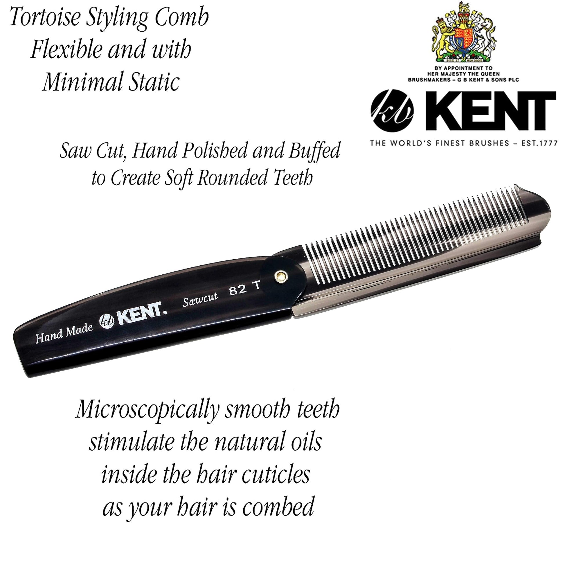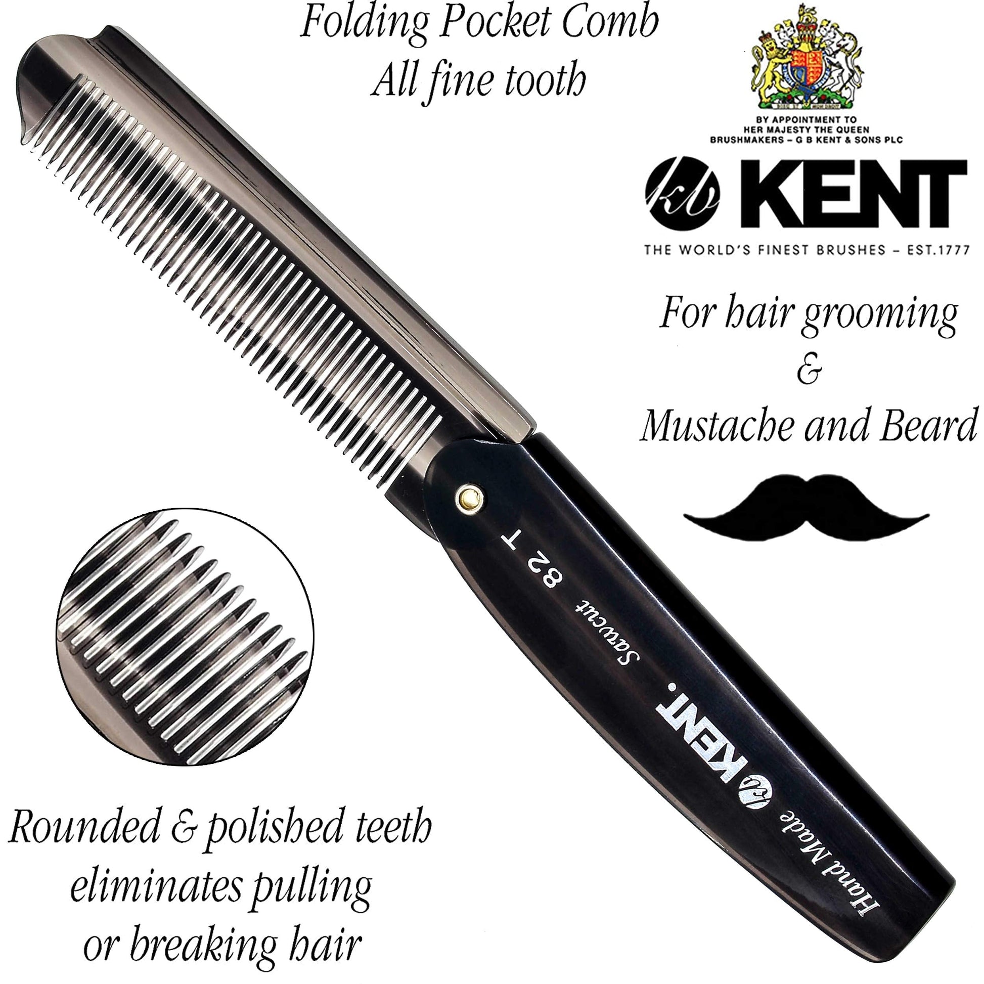 Kent 82T Handmade Folding Pocket Comb for Men, Fine Tooth Hair Comb Straightener for Everyday Grooming Styling Hair, Beard or Mustache, Use Dry or with Balms, Saw Cut Hand Polished, Made in England