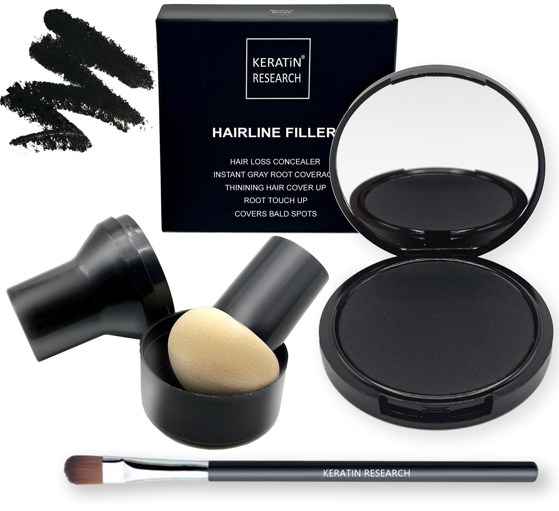 KERATIN RESEARCH Hairline Filler Unisex Mineral Powder Root Touch-Up Hair loss Concealer Scalp & Beard Bald Patch Coverage Fibers for Thinning Hair Waterproof Organic Natural look (BLACK, XL)