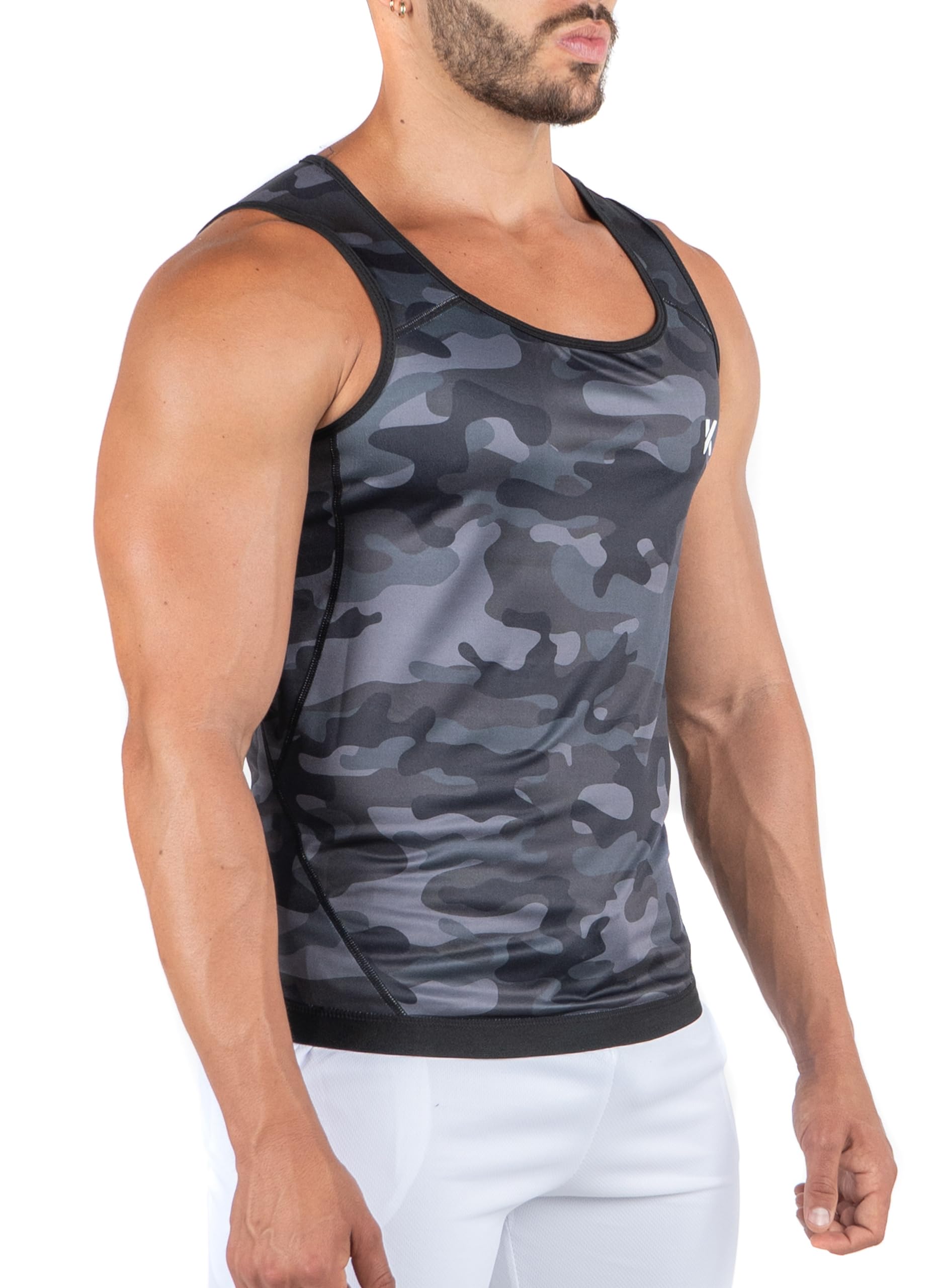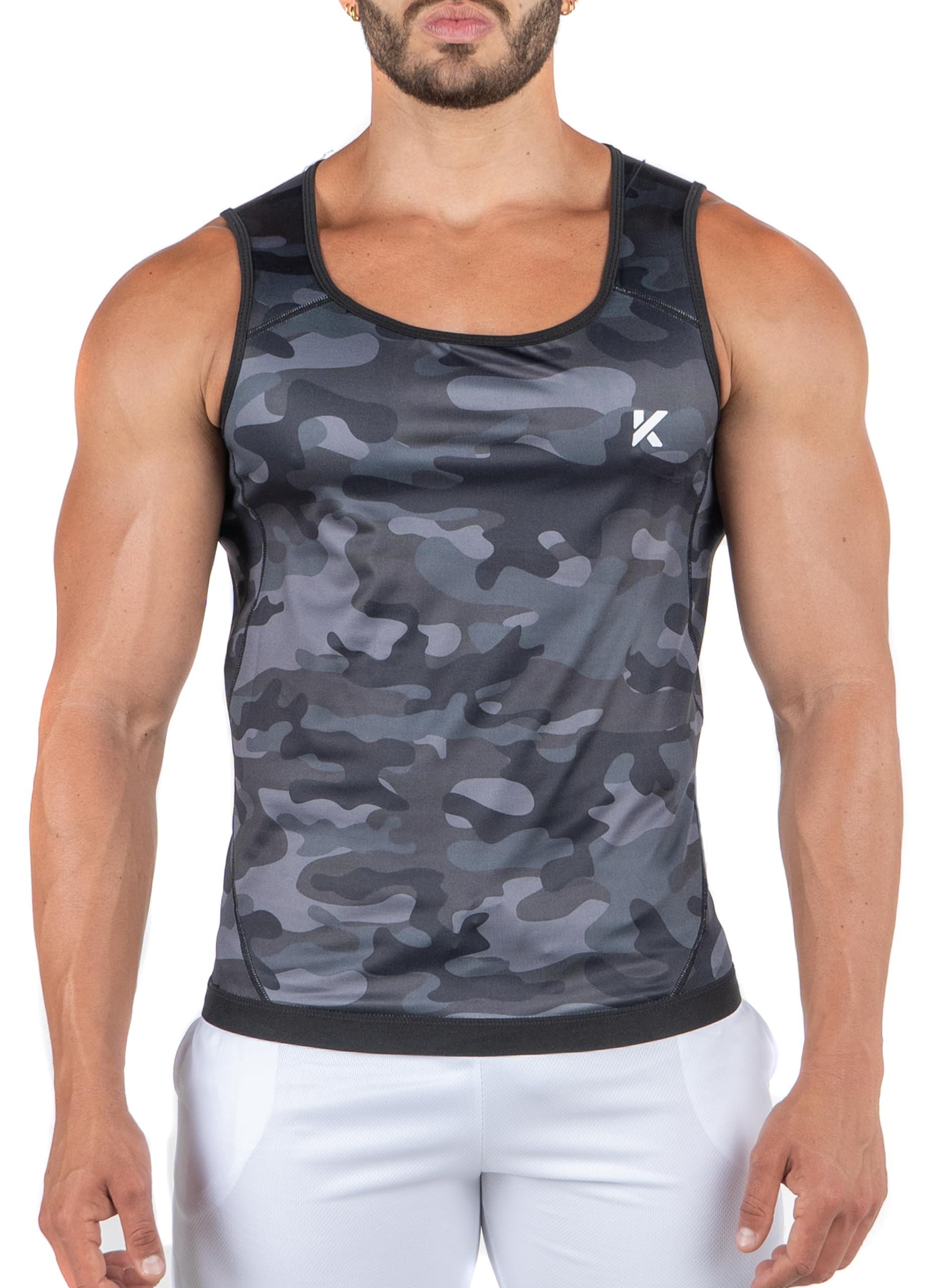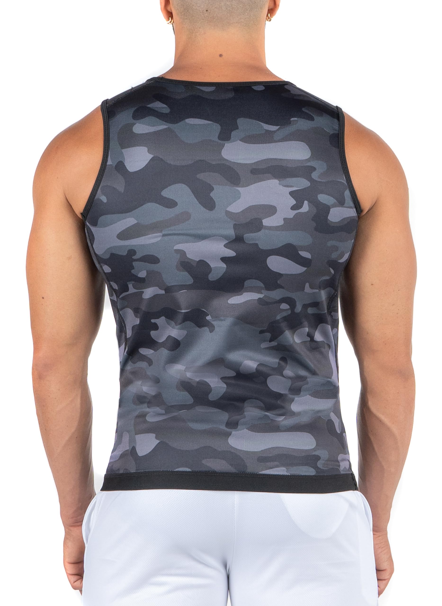Kewlioo Men's Heat Trapping Pullover Sweat Enhancing Vest - Compression Vest Shirt Shapewear Top - Gym Exercise Versatile Heat Shaper Jacket (Gray Camo, S/M)