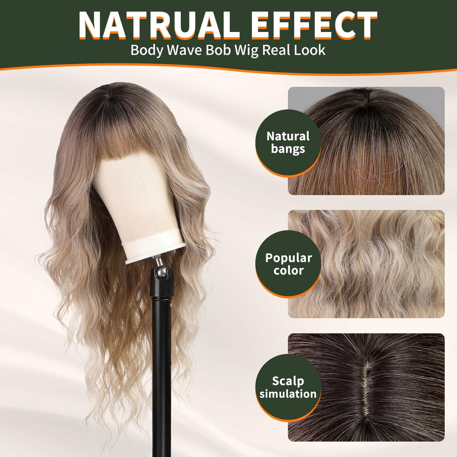 Details: KOME Ombre Ash Blonde Wigs with Bangs,Grey Blonde Long Wavy Wig for Women,Long Curly Synthetic Hair Wig for Party Daily Use 26IN