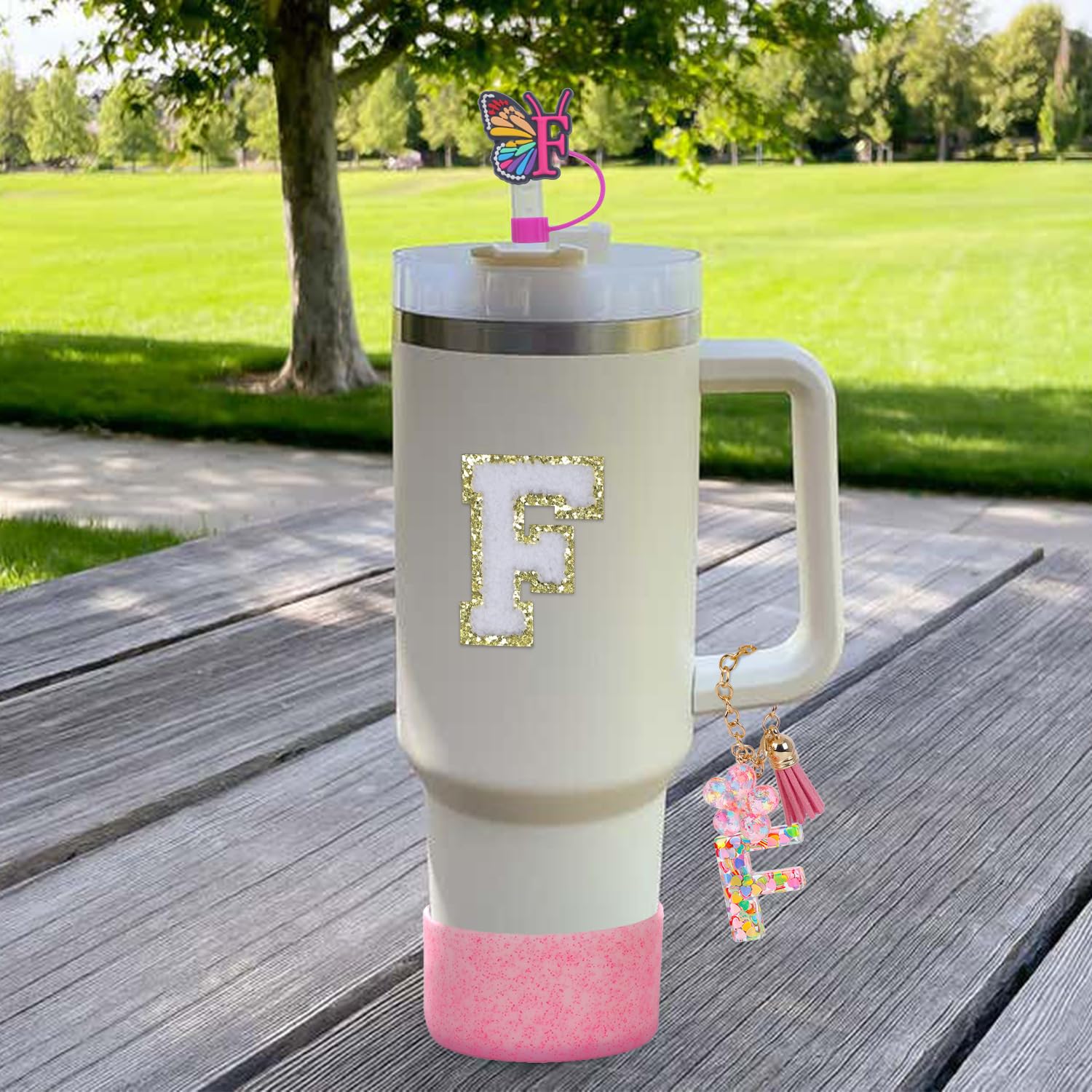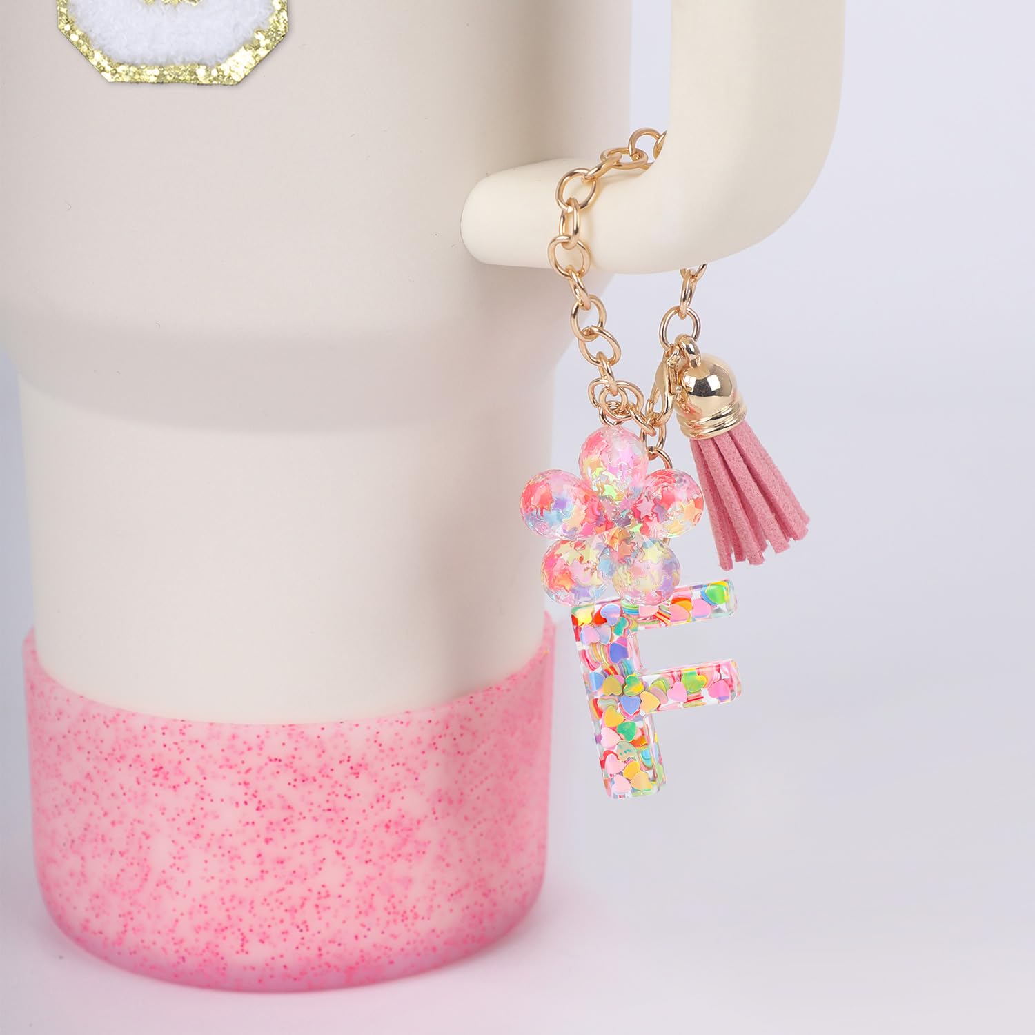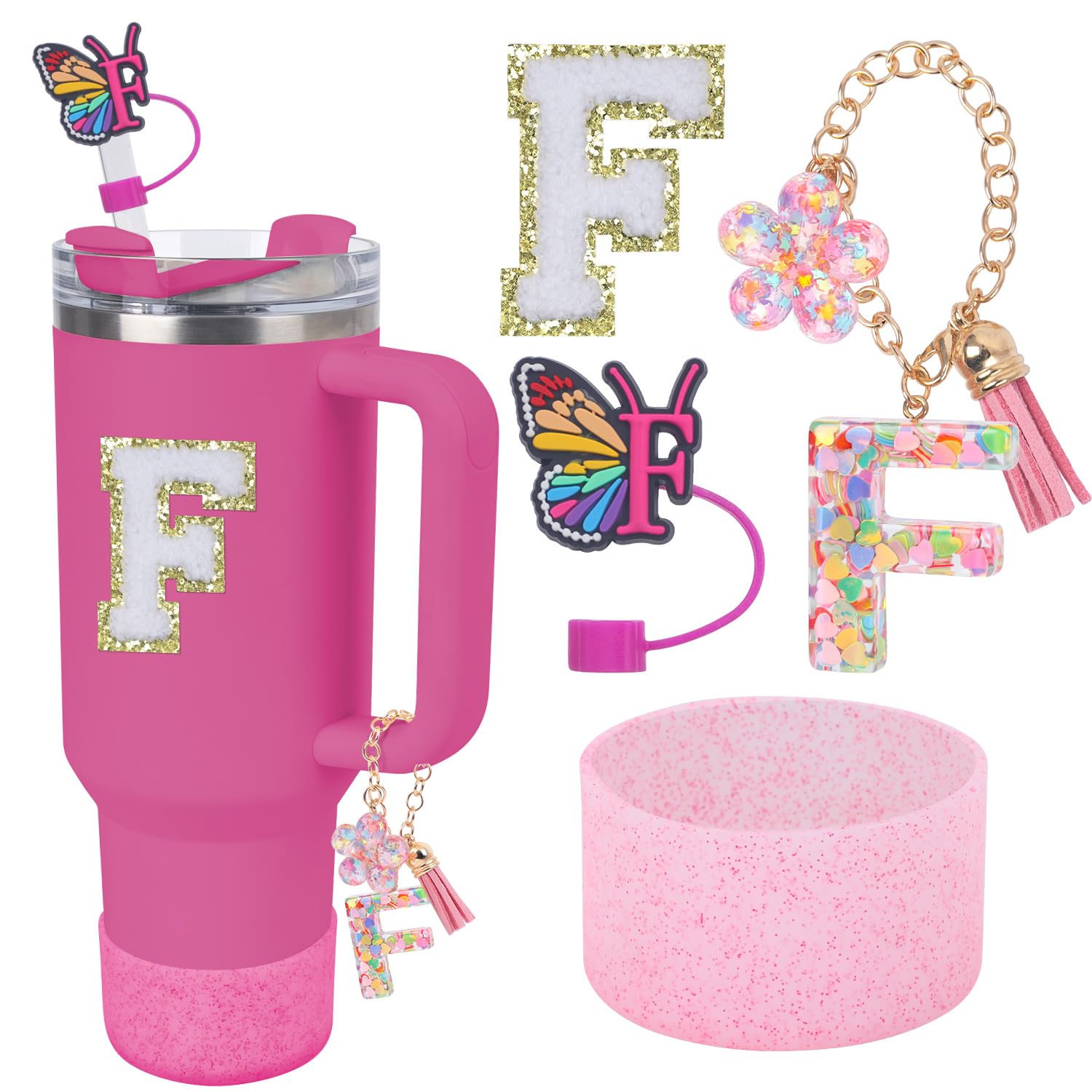 LA KEN DU Use for Stanley Cup Accessories Charms 40oz 30oz,Compatible with Stanley Cup Letter Charms for Handle Silicone Boot,Straw Cover Topper & Sticker(F)