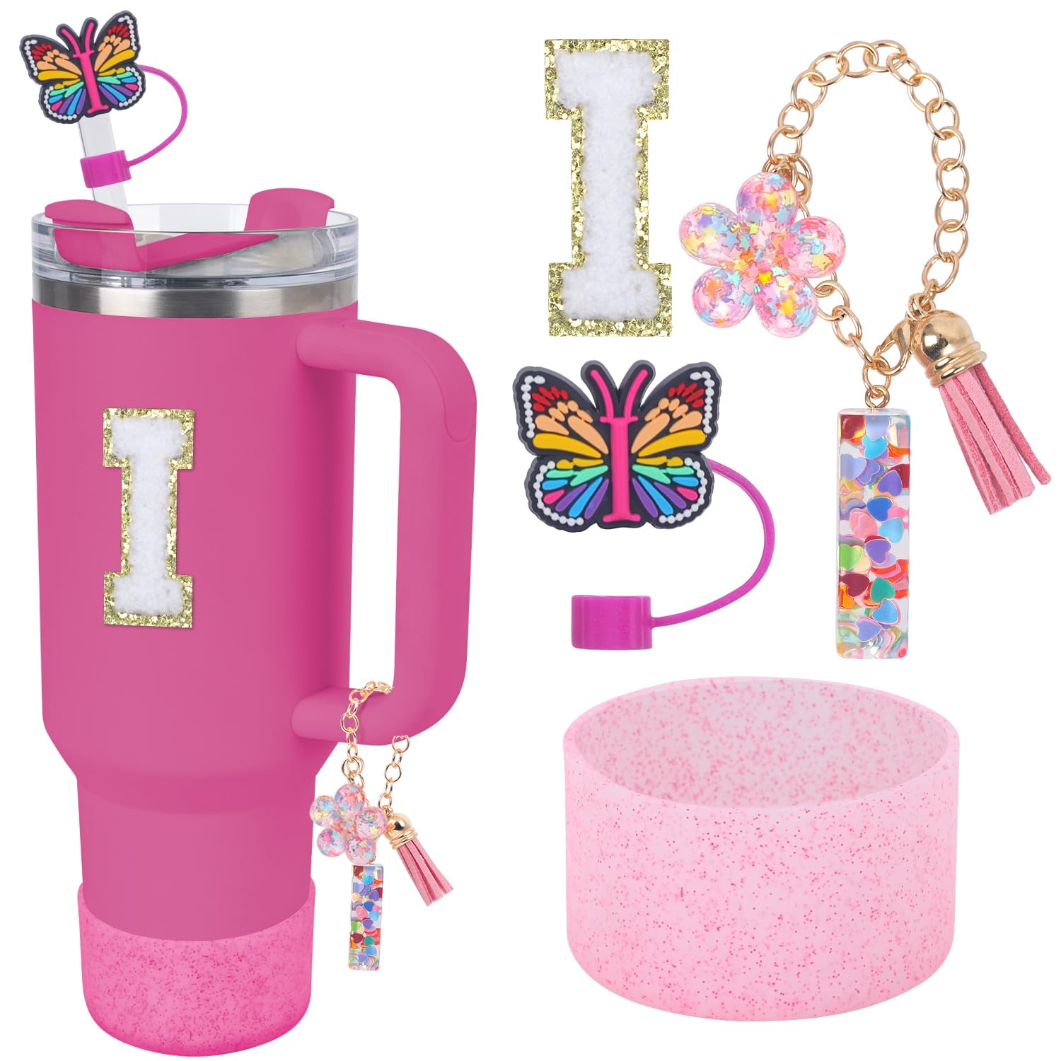 - PERSONALIZED:We not only use letter charms for stanley cups, but also experience your name on butterfly letter straw covers and towel embroidered stickers, so that you can clearly identify your cup