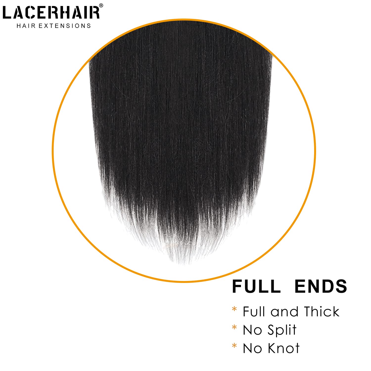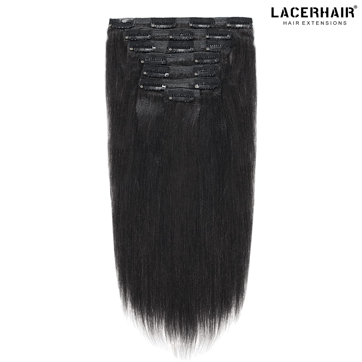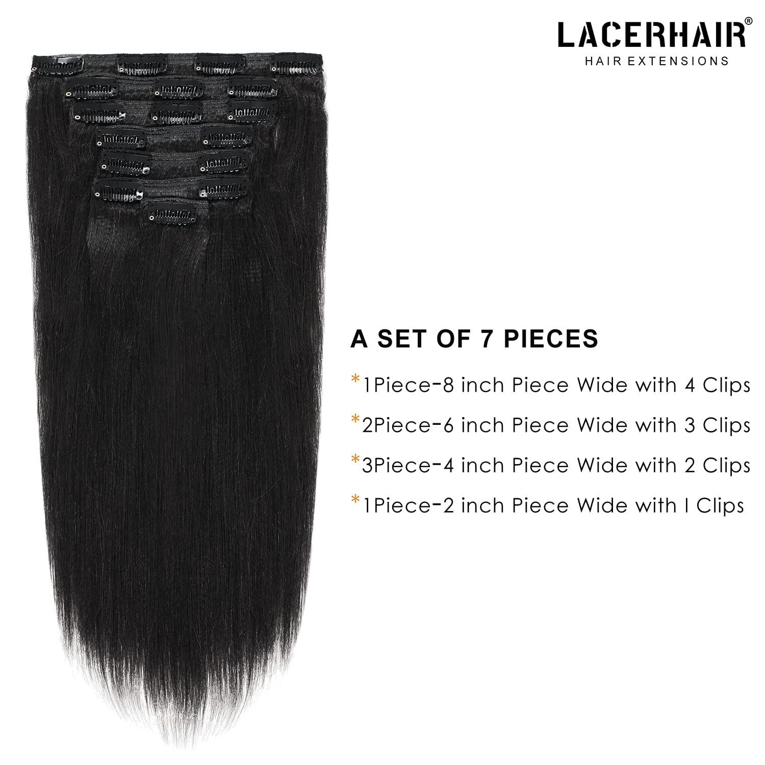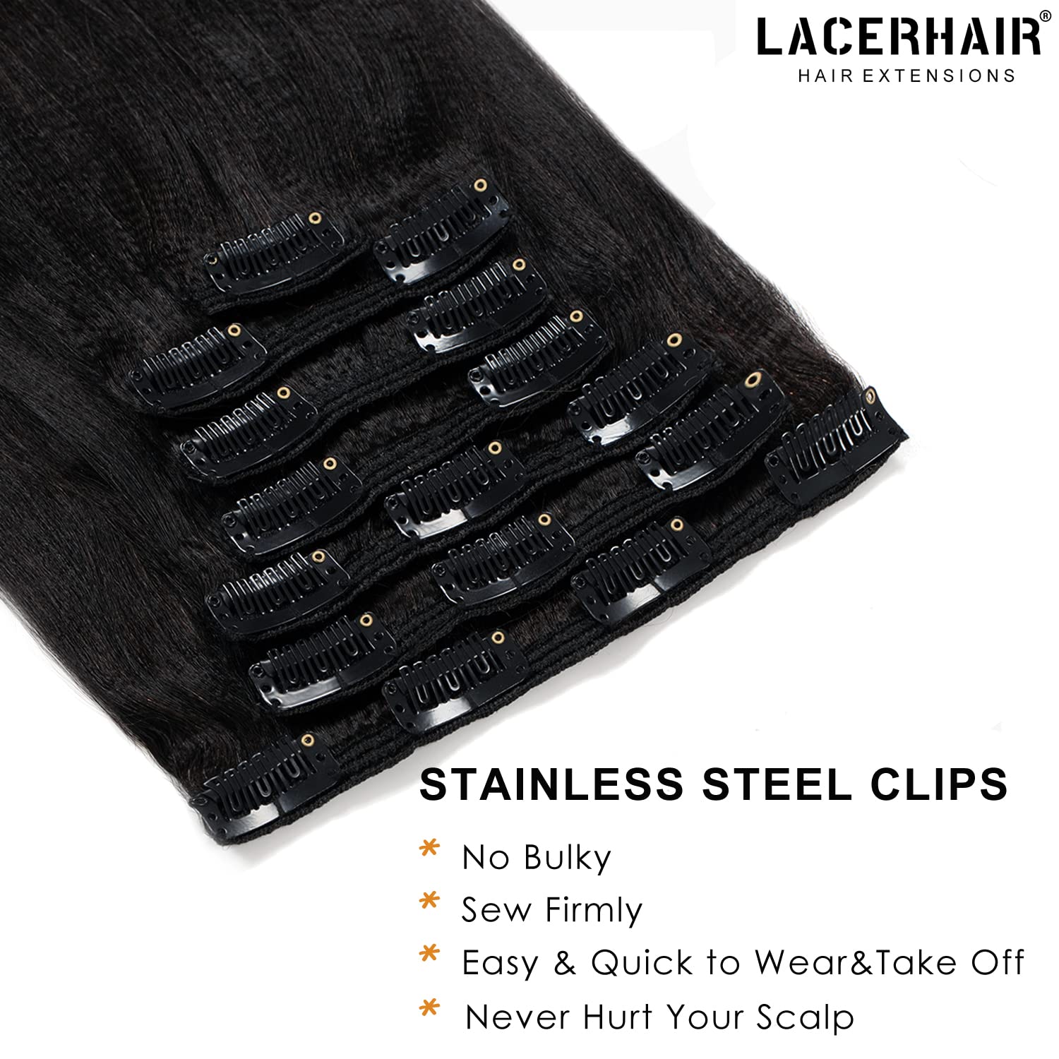 Lacer Light Yaki Clip in Hair Extensions Human Hair, 100% Virgin Remy Human Hair Extensions for African American Black Women Relaxed Hair 7 Pieces/Set 120G 14inch