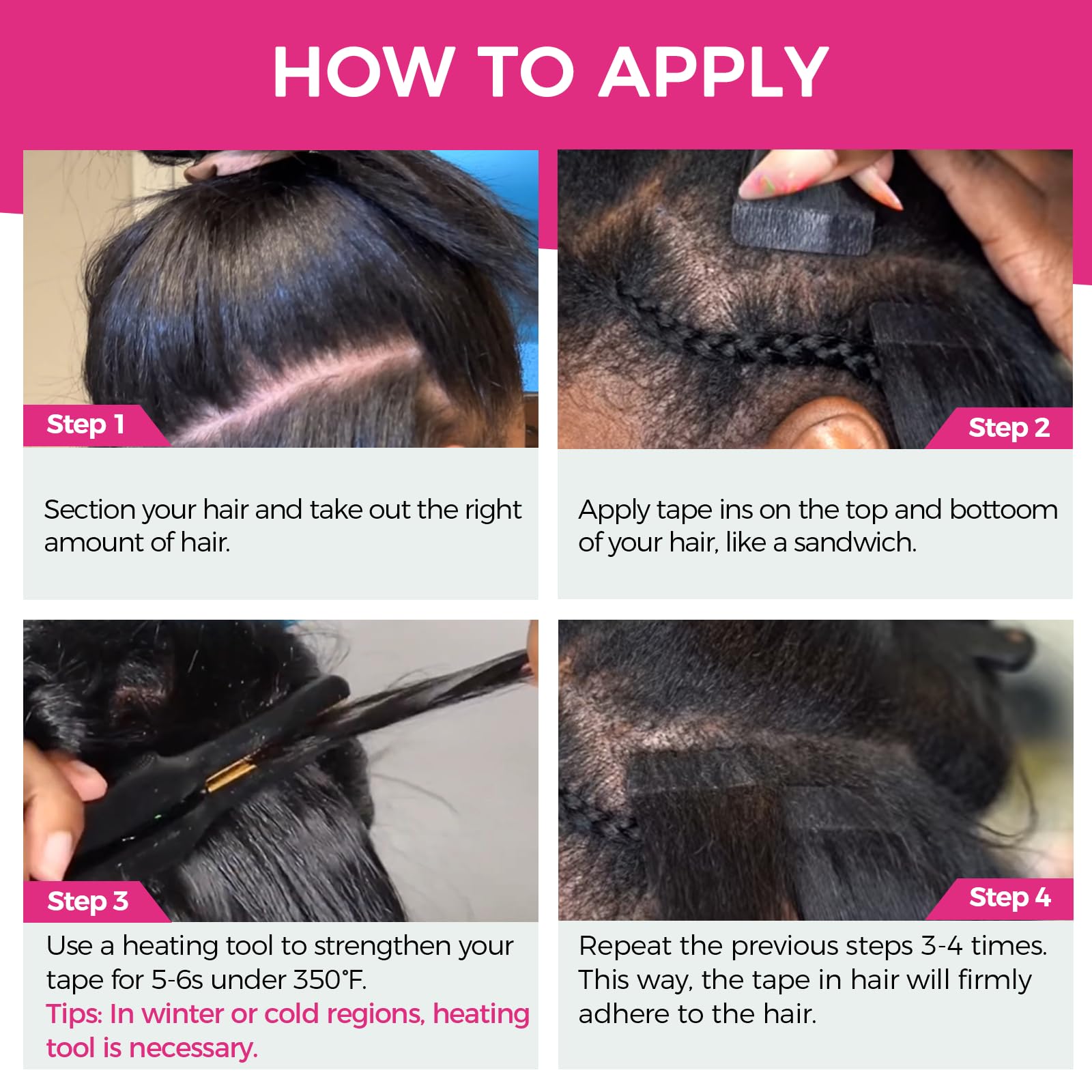 - [High-Strength Tapes & Easy to Take Out] Specially developed high-strength invisible tape. Lashey Tape ins are Easy to Install and Wear: Our tape in hair extensions have an ultra-thin tape that is designed to be virtually invisible, and will install it easily. You just peel off the backing and apply them to your hair. The tape is strong enough to hold the extensions in place, but also easy to remove when it's time to take them out. You just need any remover to take it out.
