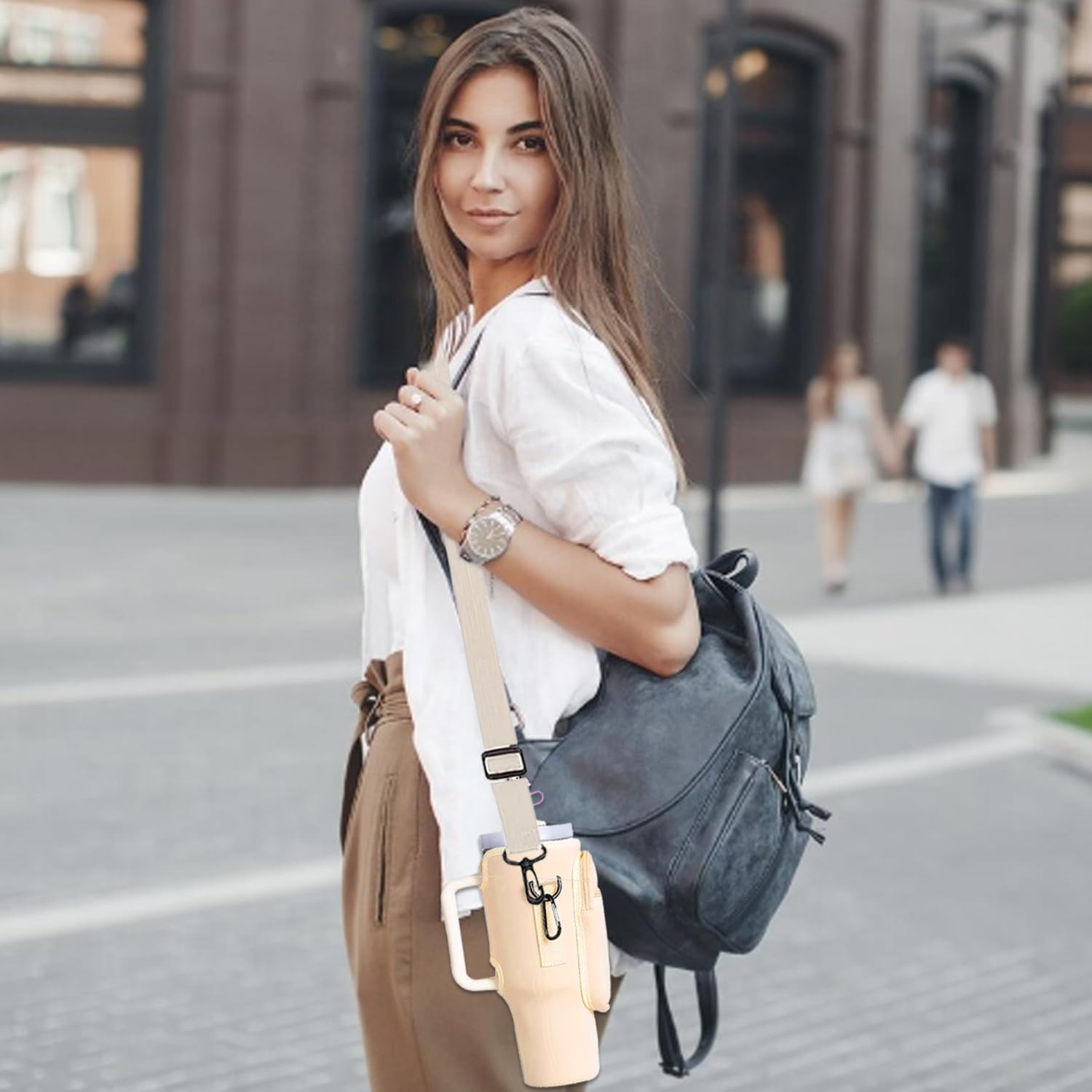 - 【Perfect for Stanley 30oz Tumbler with Handle】This water bottle holder with strap is specially designed for Stanley Cup 30 oz. For stanley accessories 30 OZ provide a snug fit and features fine stitching, making your tumbler pouch even more stylish. The snug fit of the cup makes it easy to keep your for starbucks stanley cup in your car cup holder.