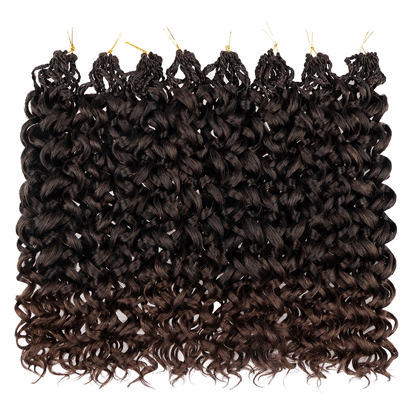 Leeven 10 Inch 8 Packs Gogo Curl Crochet Hair Ombre Brown Pre Looped Ocean Wave Crochet Hair Short Deep Twist Curly Bohemian Crochet Box Braids Synthetic Water Wave Braiding Hair for Women