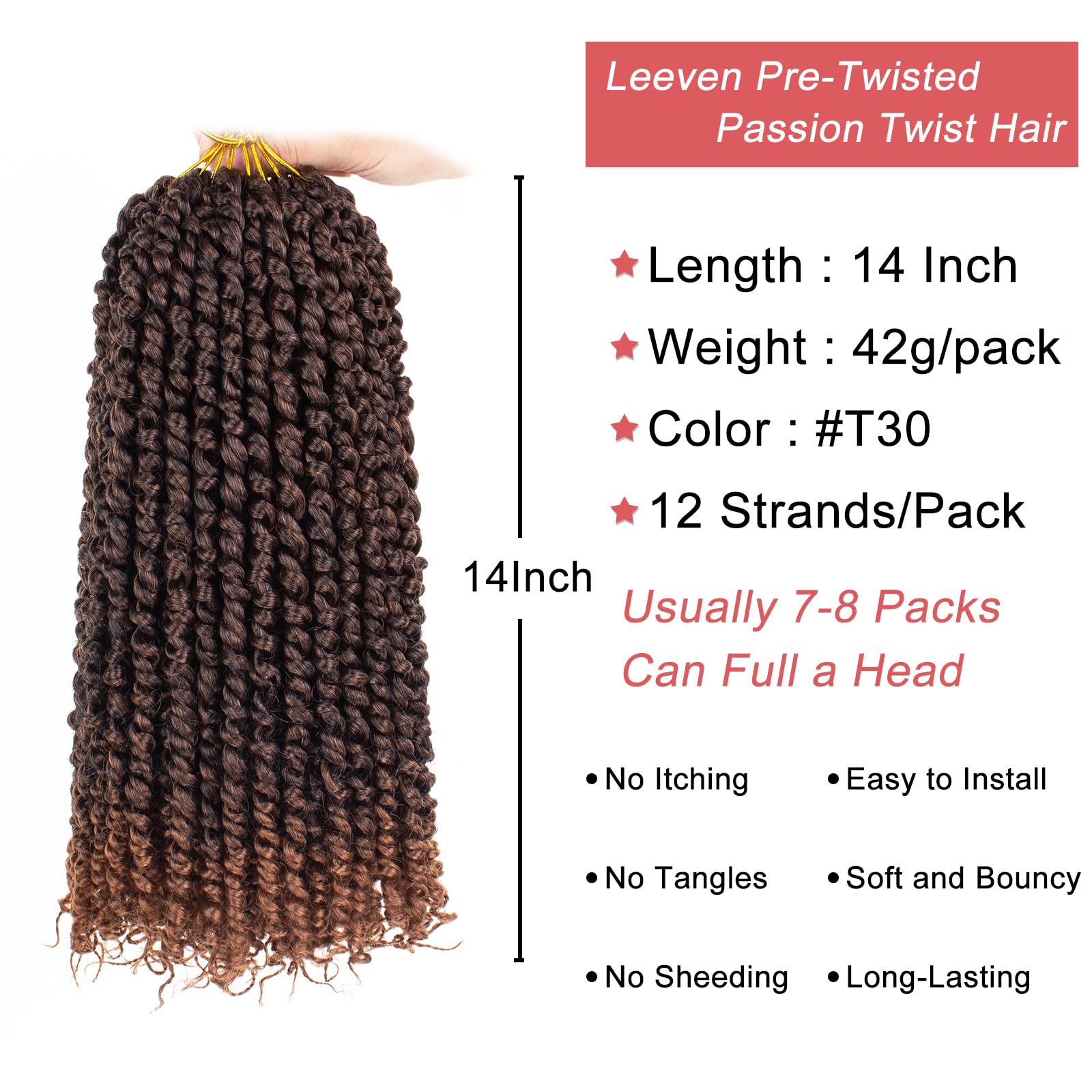 - 【Package】8 packs 14 inch crochet passion twist hair. 42g/pack, 12 Strands/pack, 96 Strands in total. 8 packs can make a full head.