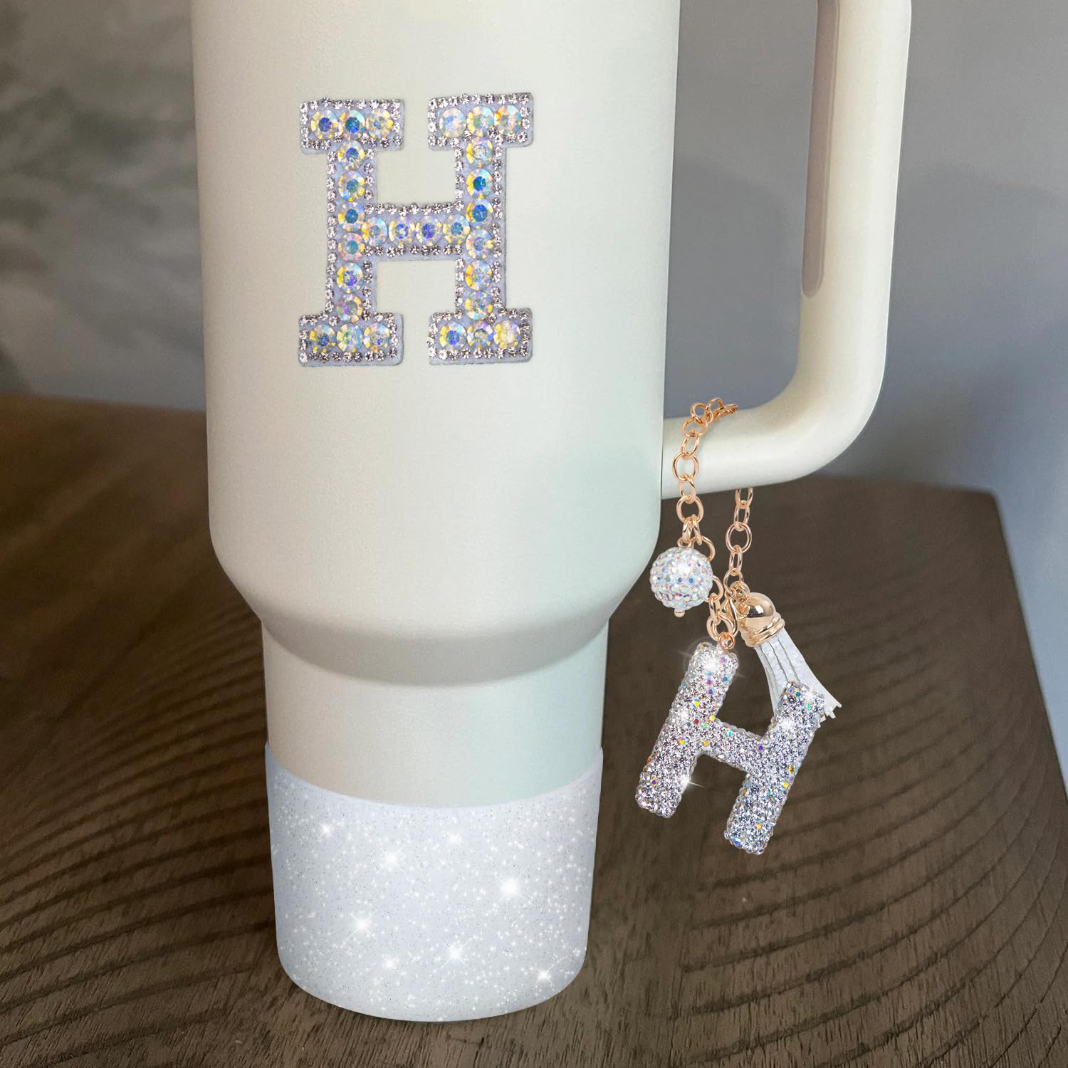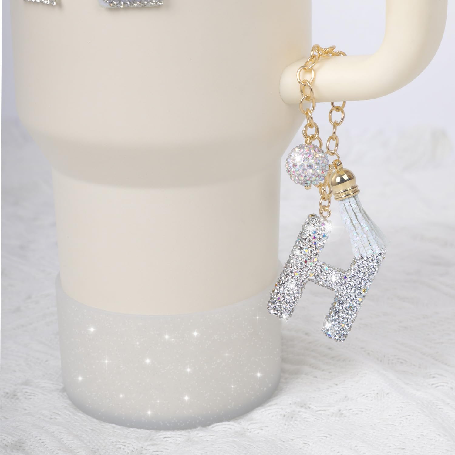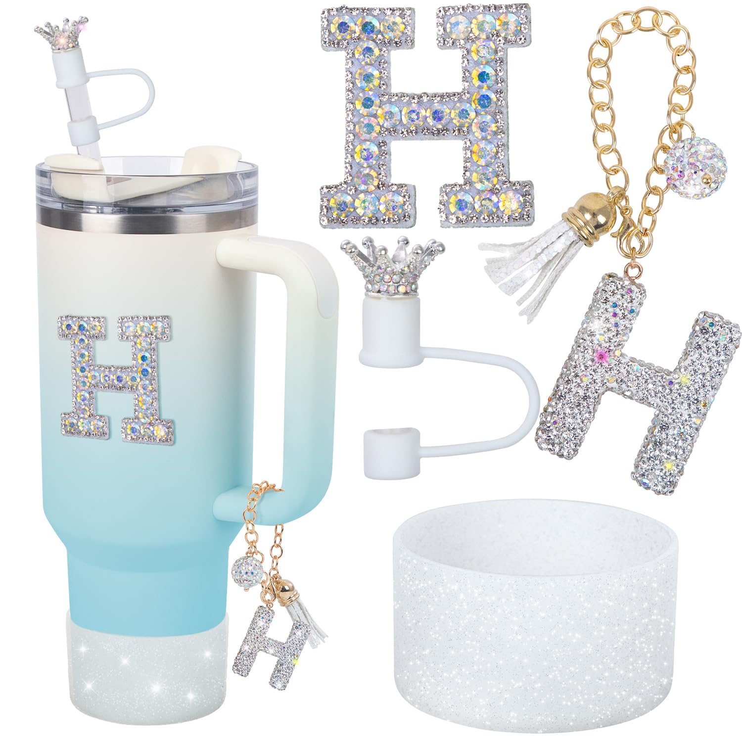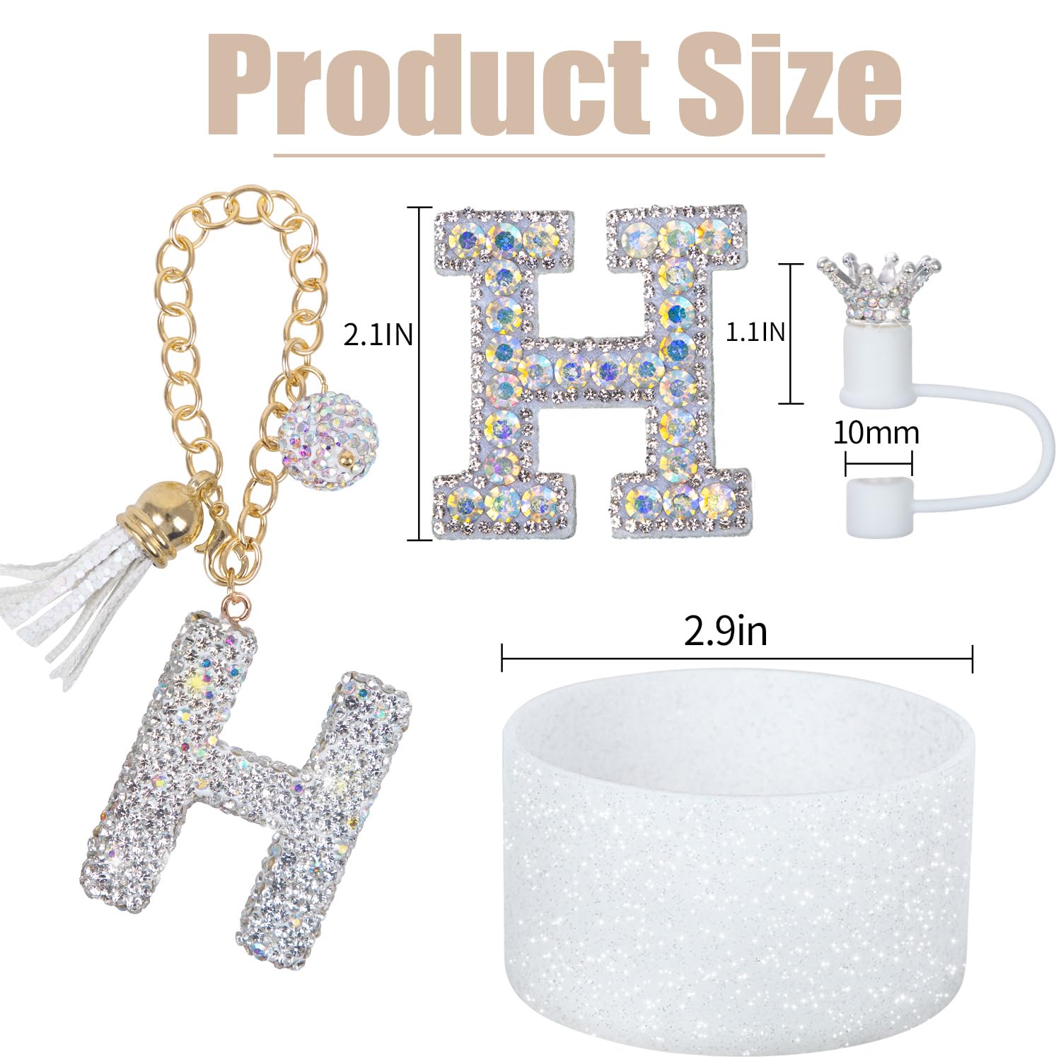 Letter Charms for Stanley Cup Handle,Silicone Boot Accessories Charms for Stanley Cup 40oz 30oz,Crown Straw Cover Topper & Diamond Sticker(H)
