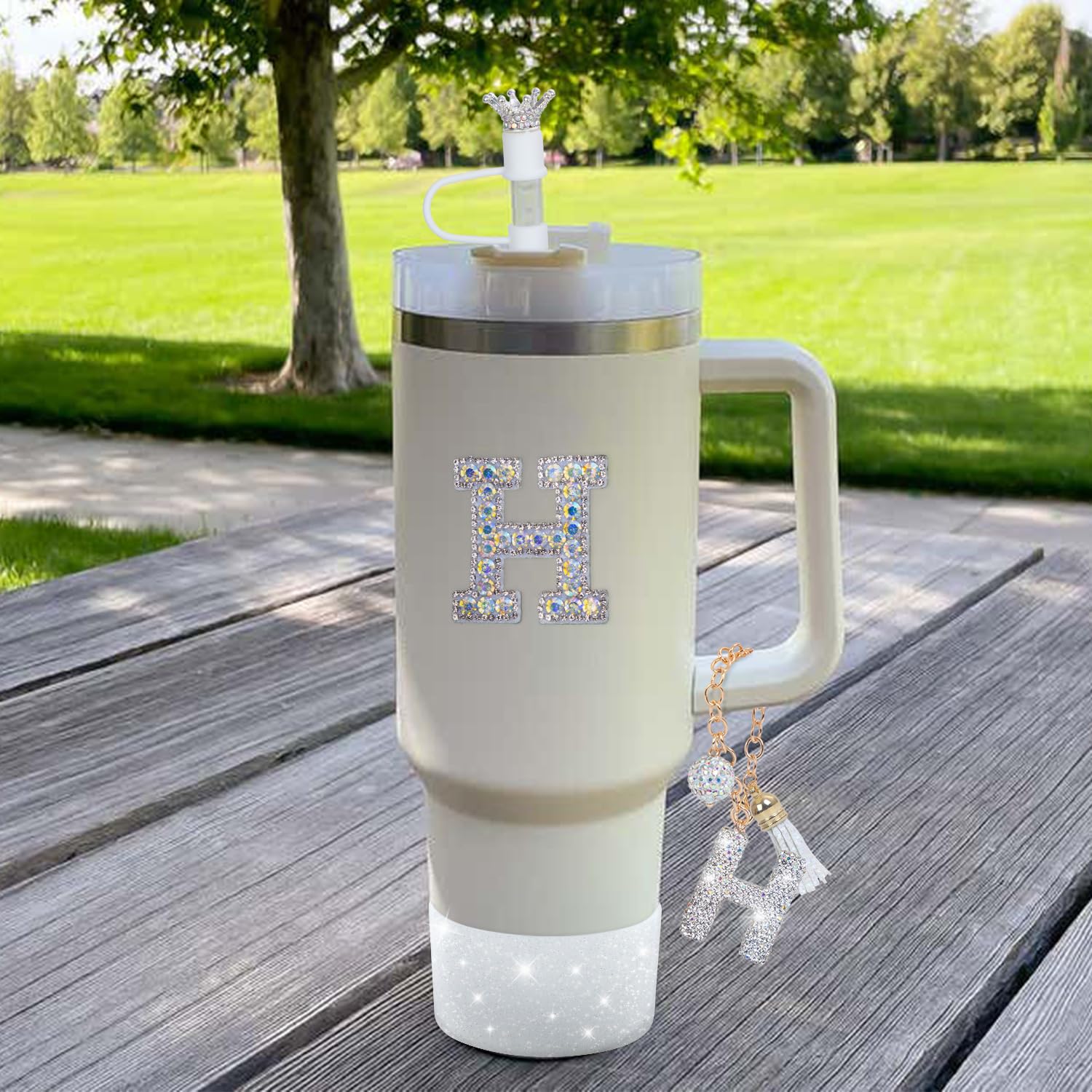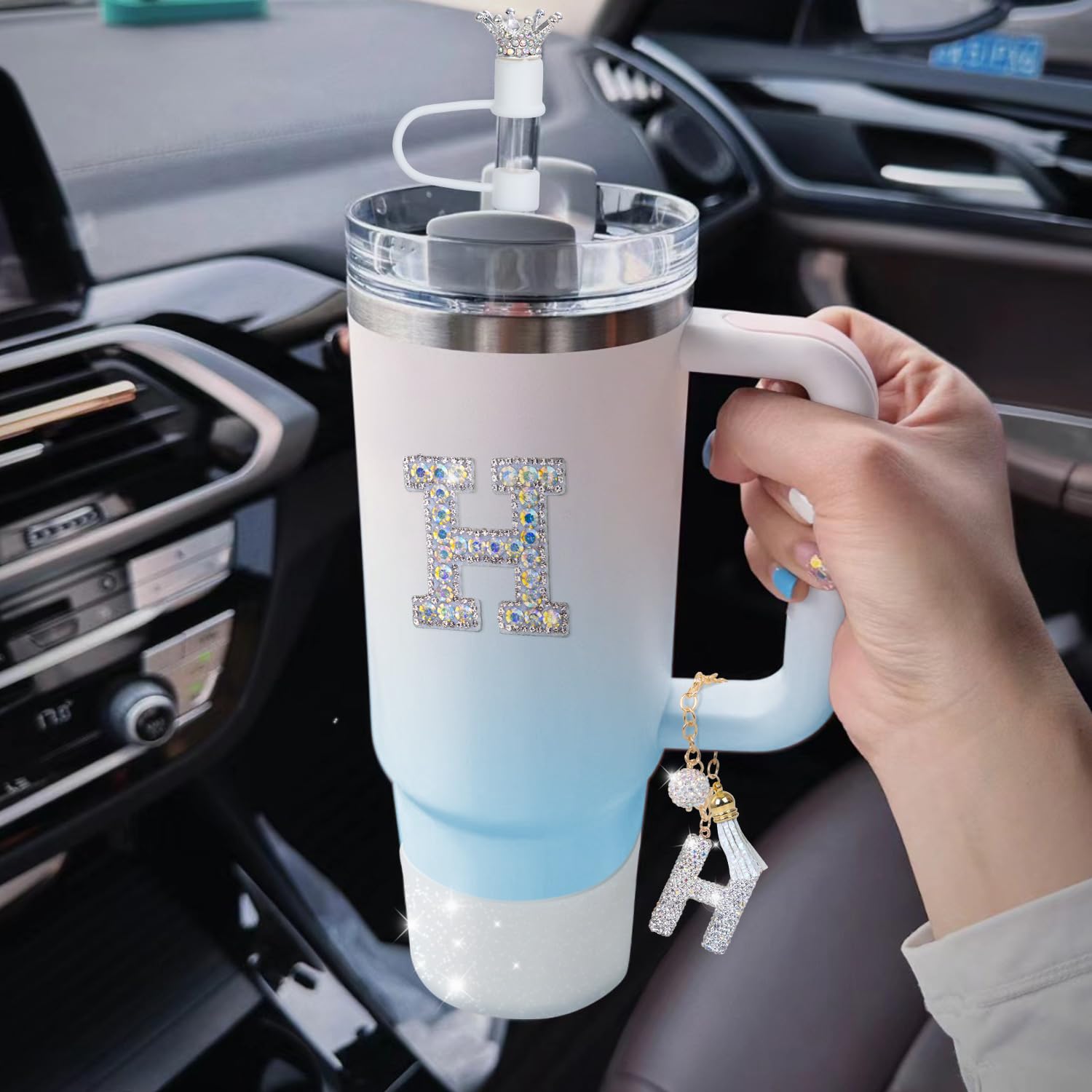 - PERSONALIZED:We not only use letter charms for stanley cups, but also experience your name on diamond stickers, so that you can clearly identify your cup