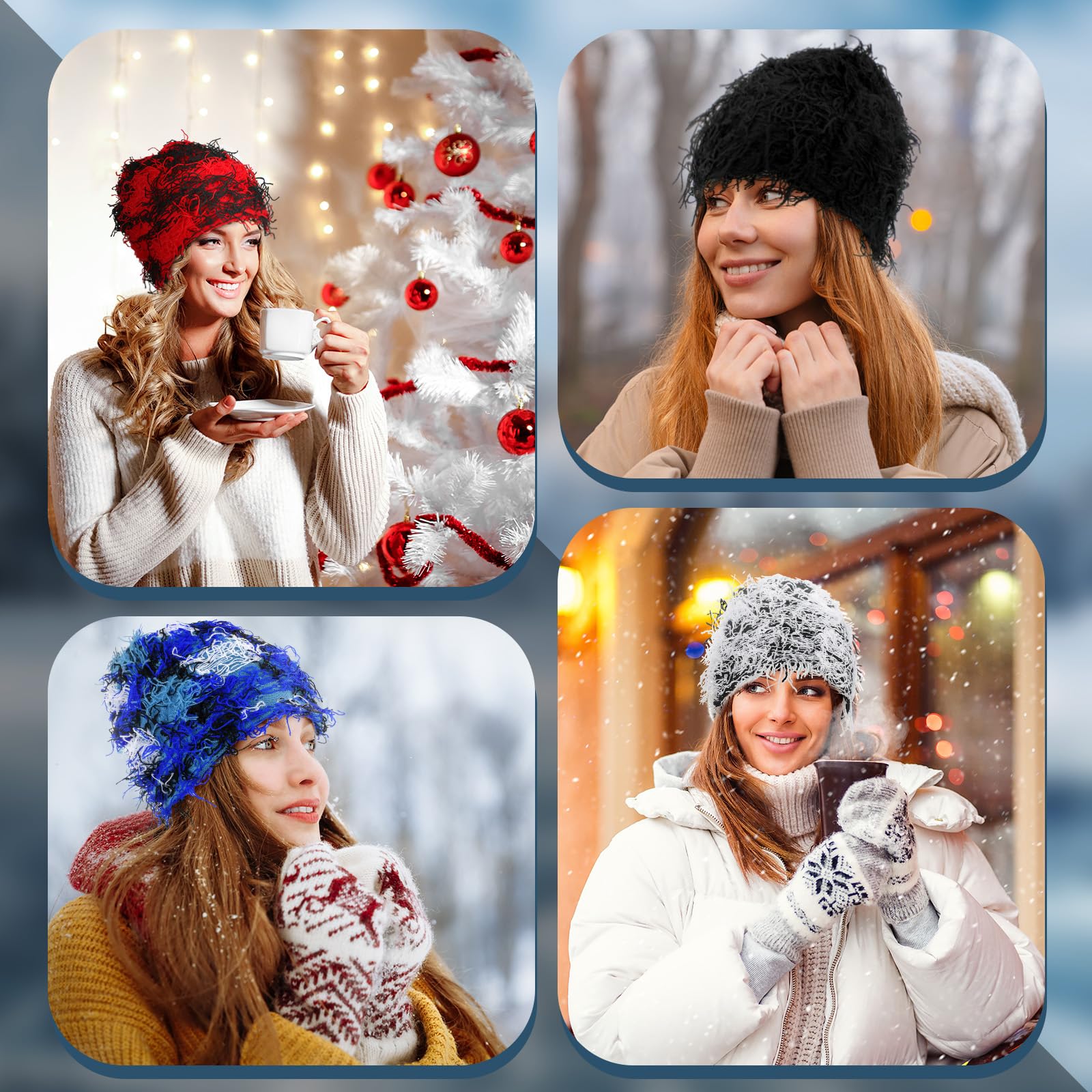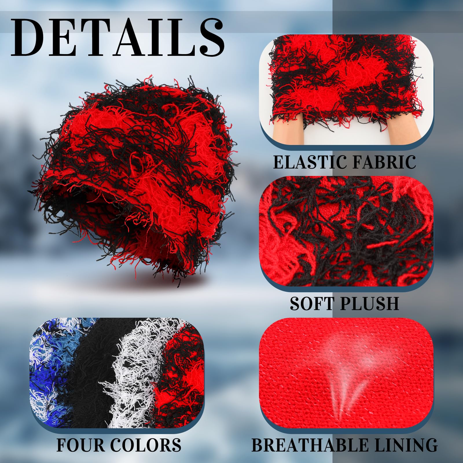 Lewtemi 4 Pcs Unisex Distressed Balaclava Winter Warm Knitted Beanie Outdoor Fuzzy Winter Hats Thick Knit Beanie Caps for Men Women, 4 Colors