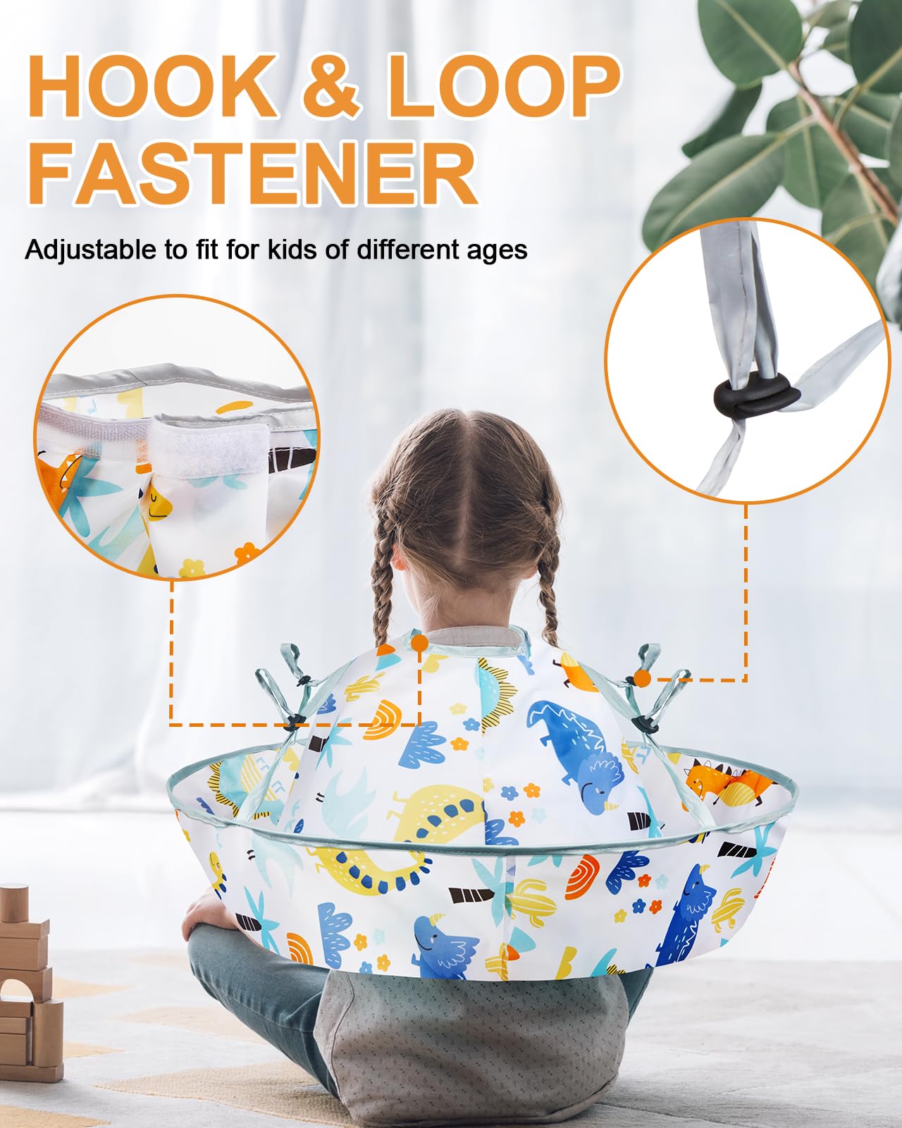 Lictin Haircut Capes Umbrella for Kids - Hair Cutting Haircut Cape Kids Waterproof Foldable Adjustment, Hairdressing Umbrella Cape Apron, Dinosaur Theme